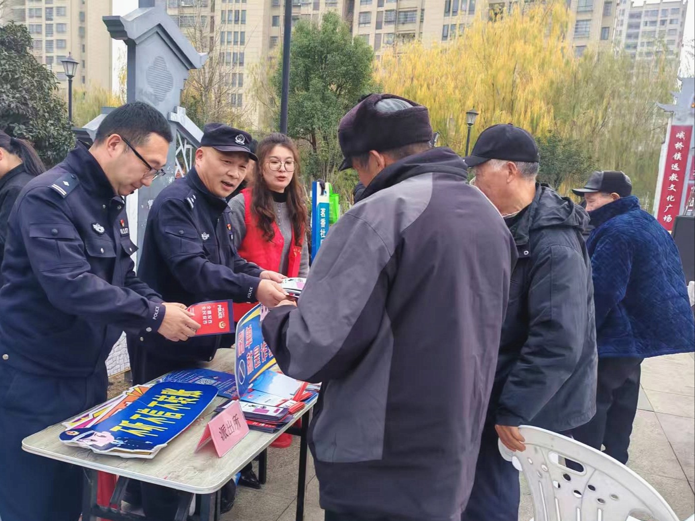 12月19日,芜湖市公安局弋江分局峨桥派出所民警走进峨桥镇茗香社区茶苑广场,开展反电诈、禁放、禁赌等宣传活动,现场为居民答疑解惑,进一步增强群众安全防范意识,不断提升群众的安全感 ...