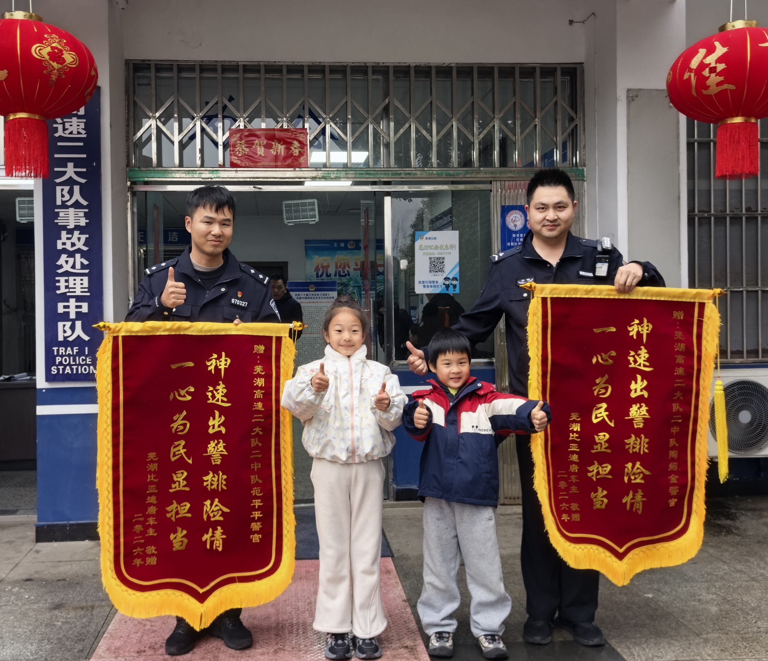 “您好!我找一下范警官、陶警官,想送面锦旗当面感谢他们!”2月24日,王女士特意来到高速公路二大队繁昌驻地,将印有“神速出警排险情,一心为民显担当”的两面锦旗送到民警、辅警手中,...
