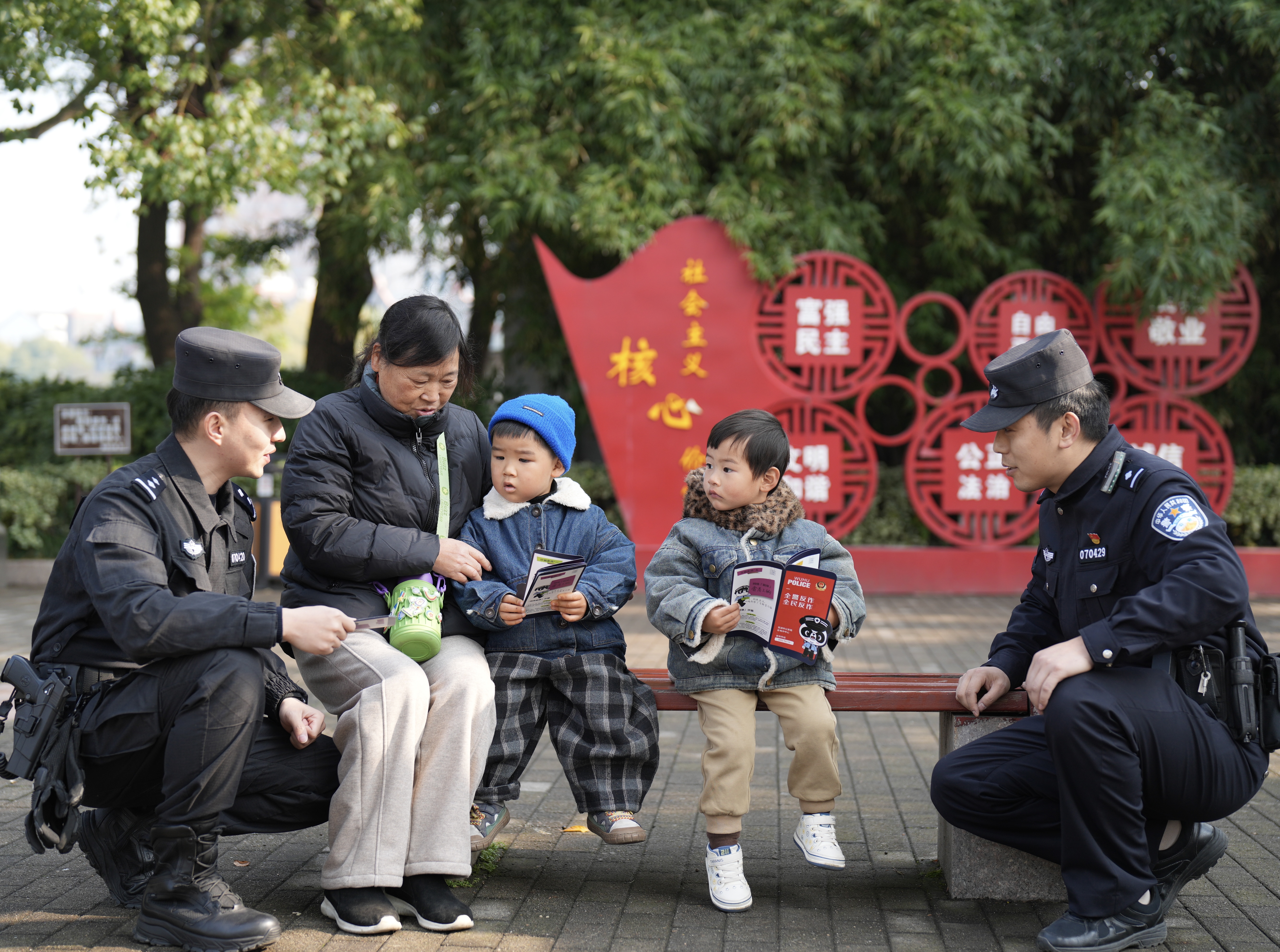 12月22日下午,芜湖市公安局镜湖分局特巡警大队步行街警组,组织民警辅警深入该市鸠兹风景区,开展反诈宣传活动,着力提升群众防骗识骗能力,切实守护好群众的“钱袋子”。(陈捷)