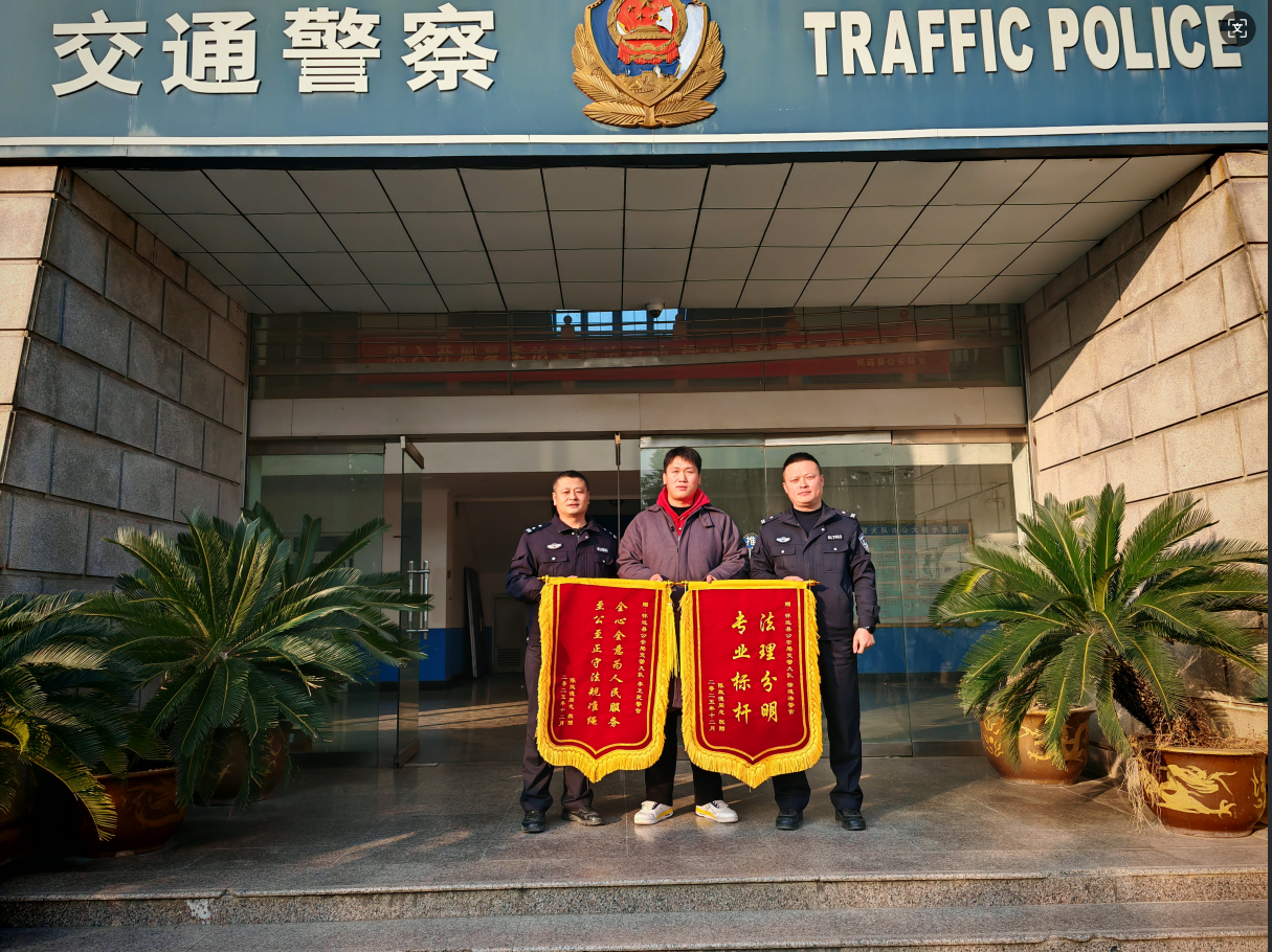 12月17日下午,群众陈先生来到怀远县公安局交通管理大队事故预防处置中队,将“法理分明专业标杆”和“全心全意为人民服务至公至正守法规准绳”的两面锦旗分别送至徐连涛与李卫民两位警官 ...