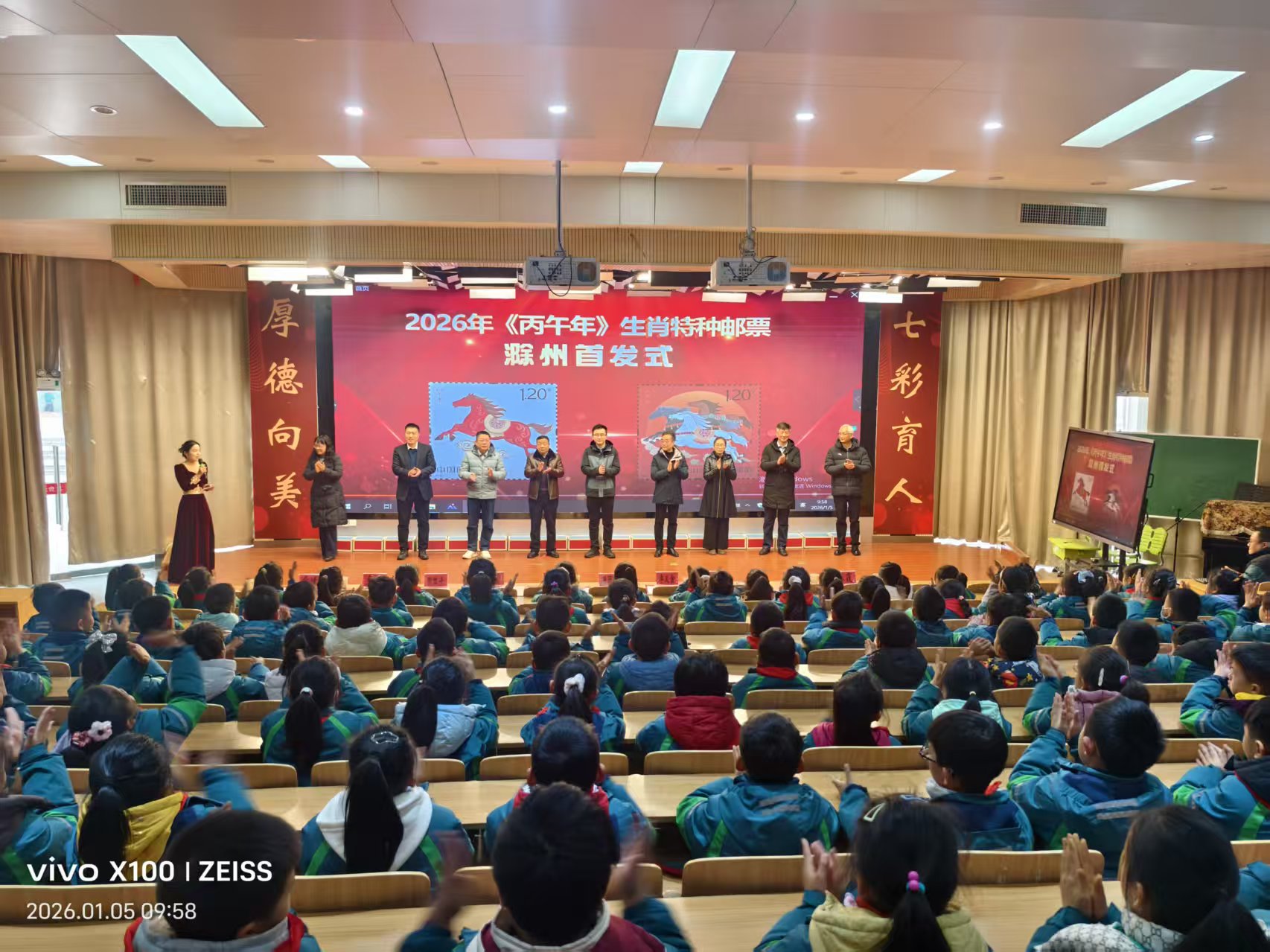 1月5日上午,《丙午年》特种邮票首发仪式及新年邮展在滁州市实验小学成功举办。