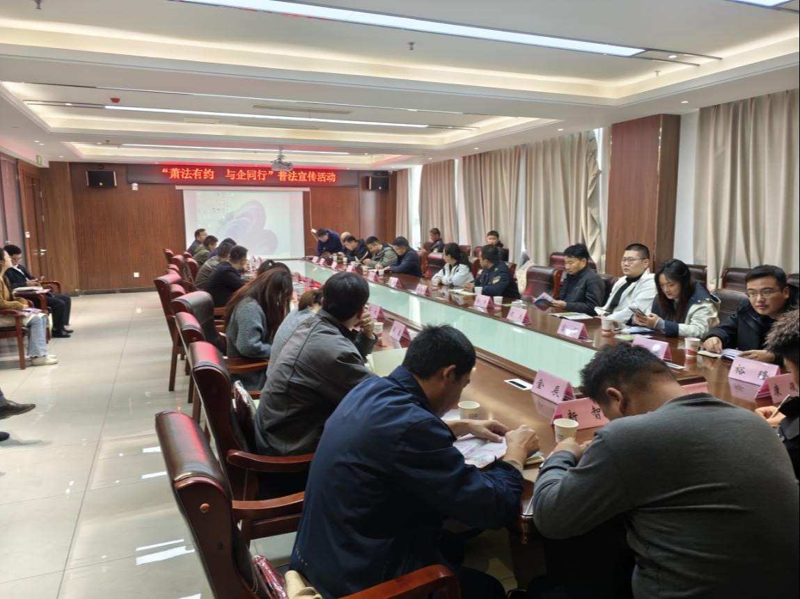 10月30日,萧县普法志愿者队伍以“萧法有约”专属普法品牌为核心牵引,开展“萧法有约 与企同行”主题宣传活动。此次活动共有40位企业代表参加。