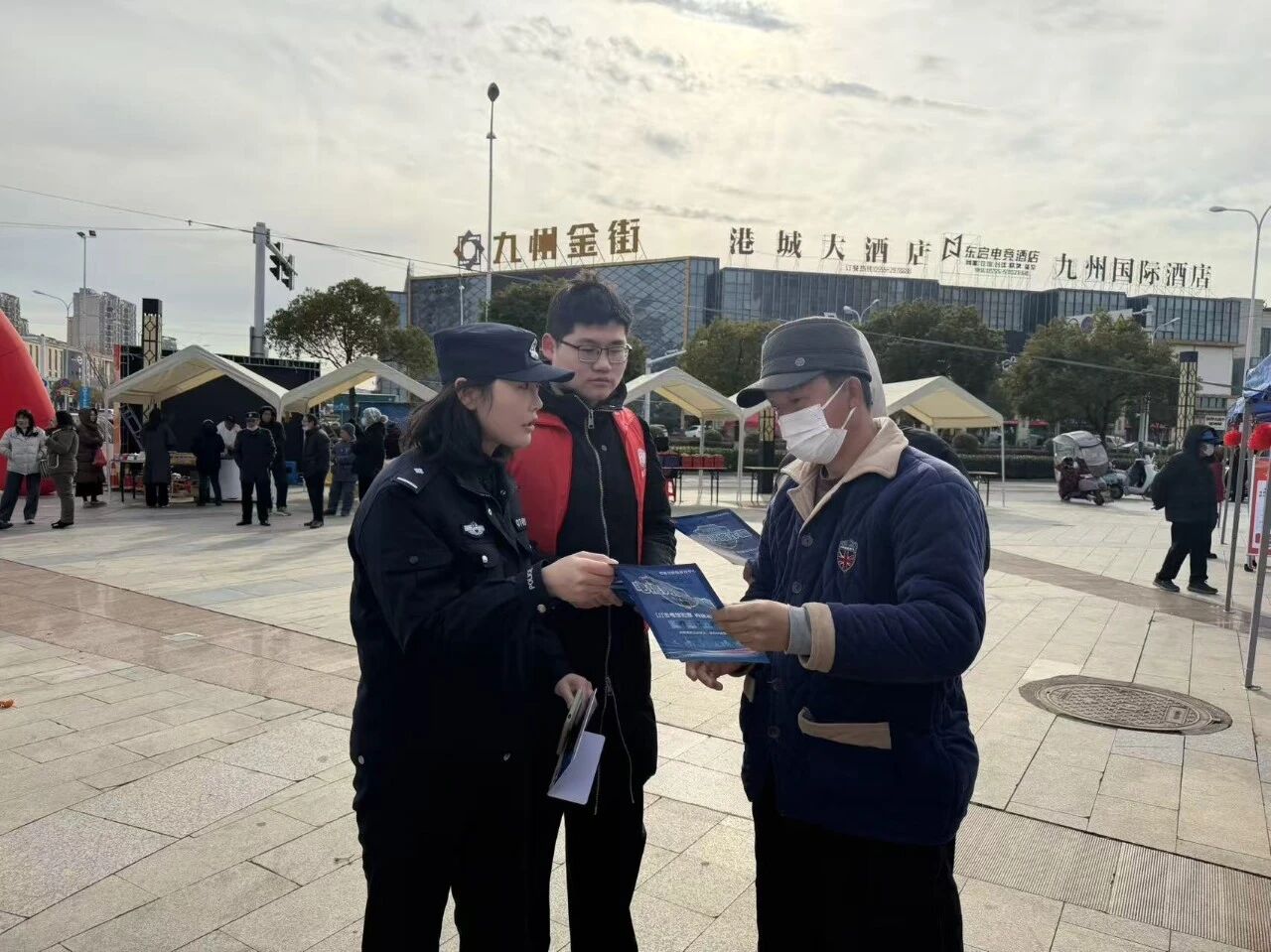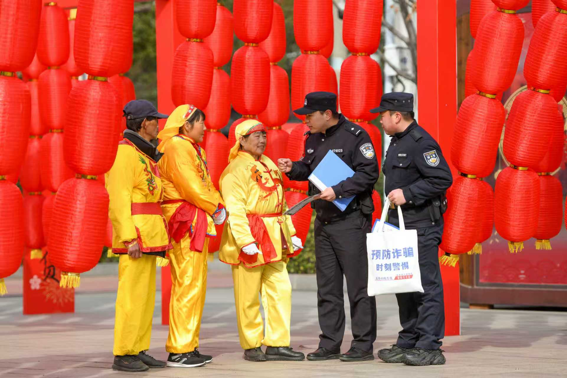 2月9日,和县公安局民警正在向群众开展预防网络诈骗宣传,揭露春节期间各类诈骗手段和防范措施,提醒群众守好“钱袋子”。(秦祖泉)