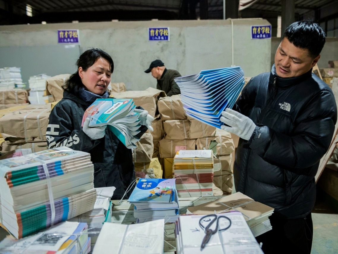 2026年2月24日,马鞍山新华书店有限公司含山县分公司工作人员迅速投入工作,清点整理新学期教材。春季开学在即,工作人员加班加点,加紧对全县中小学校所需的教材进行集中分发和打包配送,...