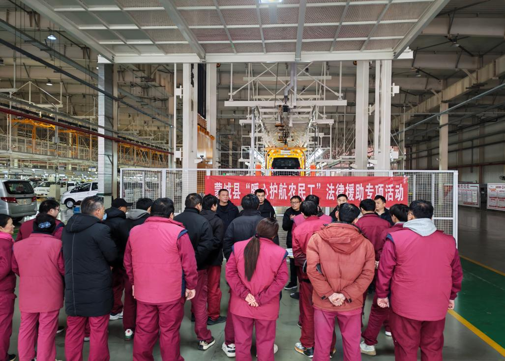 为进一步提升农民工法治观念和依法维权能力,畅通农民工法律援助服务渠道,12月24日上午,蒙城县司法局与县人社局联合组建法律服务队,深入蒙城县万隆汽车零部件有限公司和安徽江淮安驰汽 ...