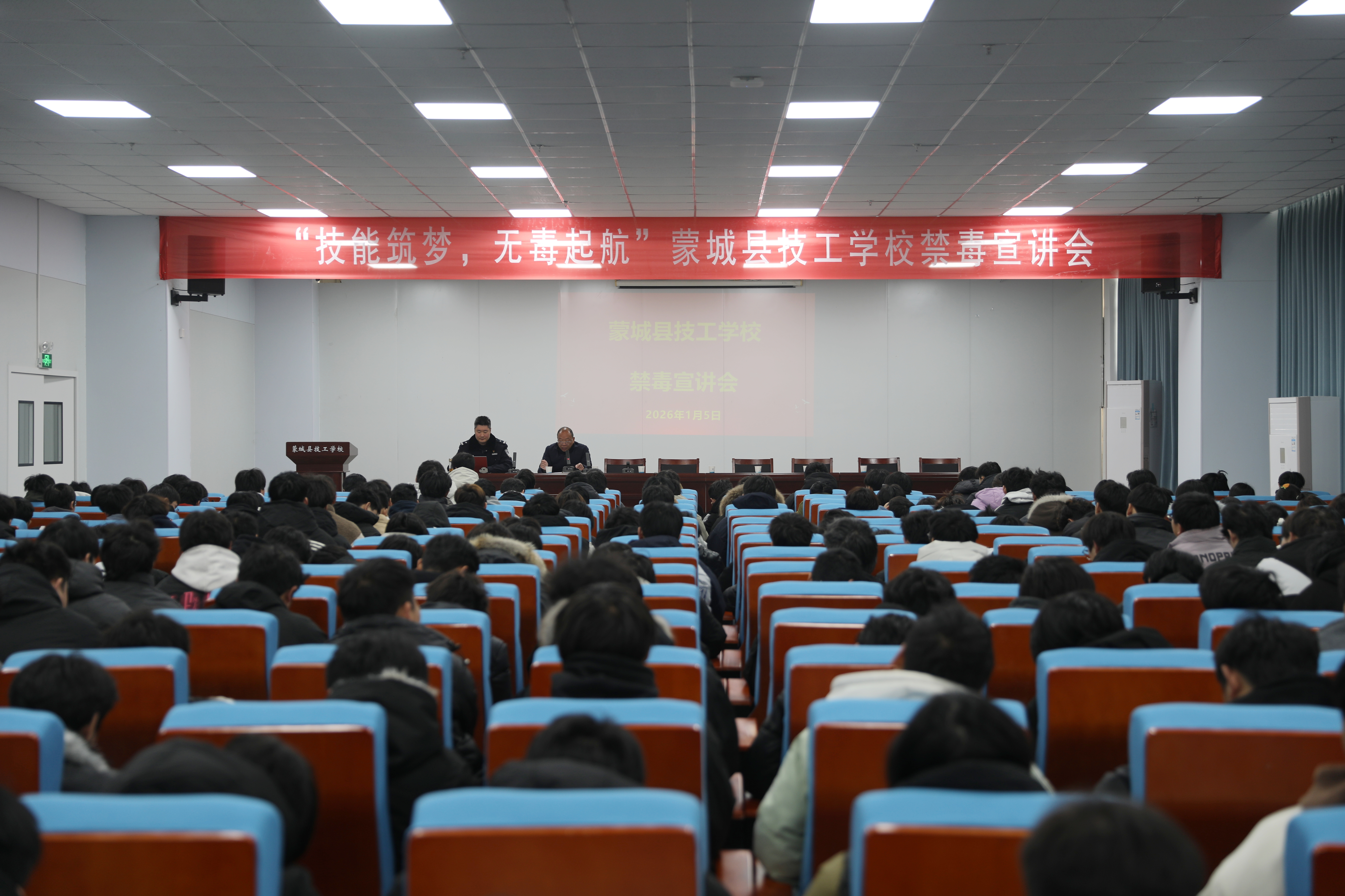 为进一步加强青少年毒品预防教育,筑牢校园禁毒防线,2026年1月5日,蒙城县公安局刑侦大队组织民警走进该县技工学校,开展以“技能筑梦・无毒启航”为主题的禁毒宣传教育活动,为300...