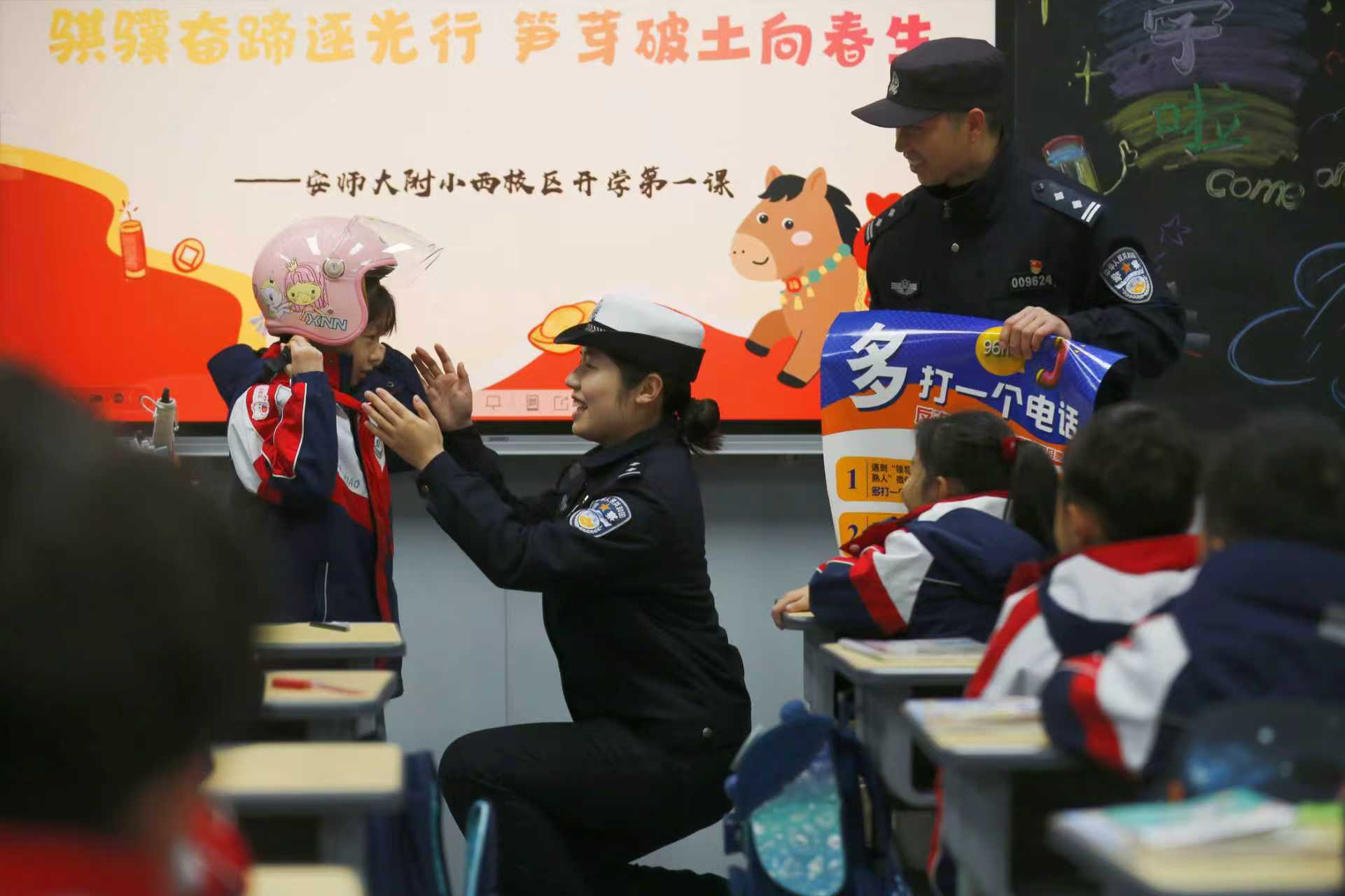 3月2日,春季开学首日,芜湖市公安局交管支队弋江大队会同辖区派出所民警一起,共同走进辖区小学,开展“开学第一课”安全知识进校园主题宣传活动,筑牢学生安全防线。