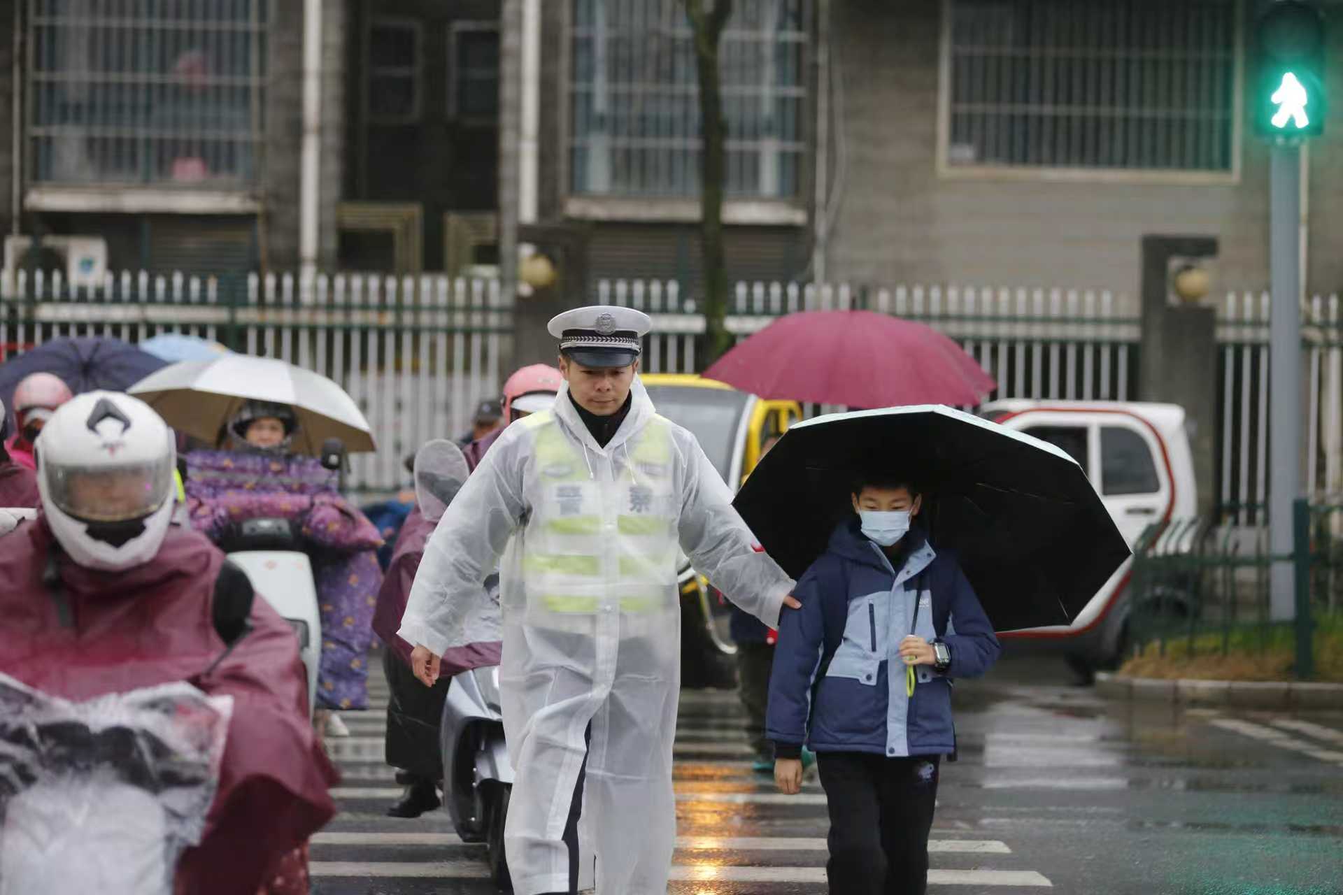 3月2日,春季开学首日,又遇阴雨天气,芜湖市公安局交管支队启动应急预案,在城区各中小学校启动“护学岗”,全力守护学生出行安全。