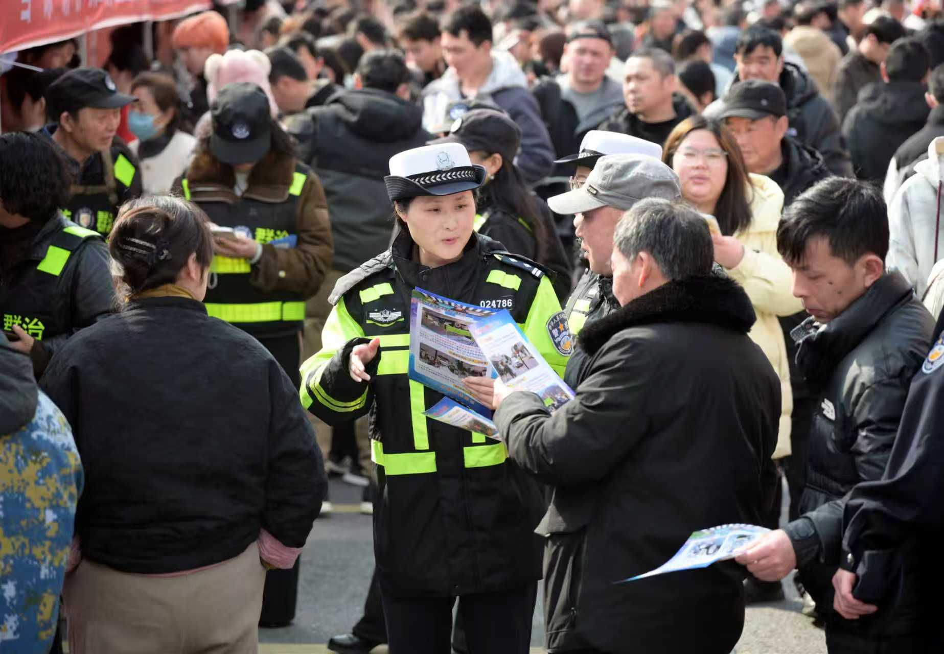 2月28日,当涂县举办“春风送岗暖人心青春护航促就业”招聘会。现场,该县公安局组织民警开展以反诈、禁毒、交通安全为主题的安全防范宣传,旨在增强务工人员的安全防范意识。