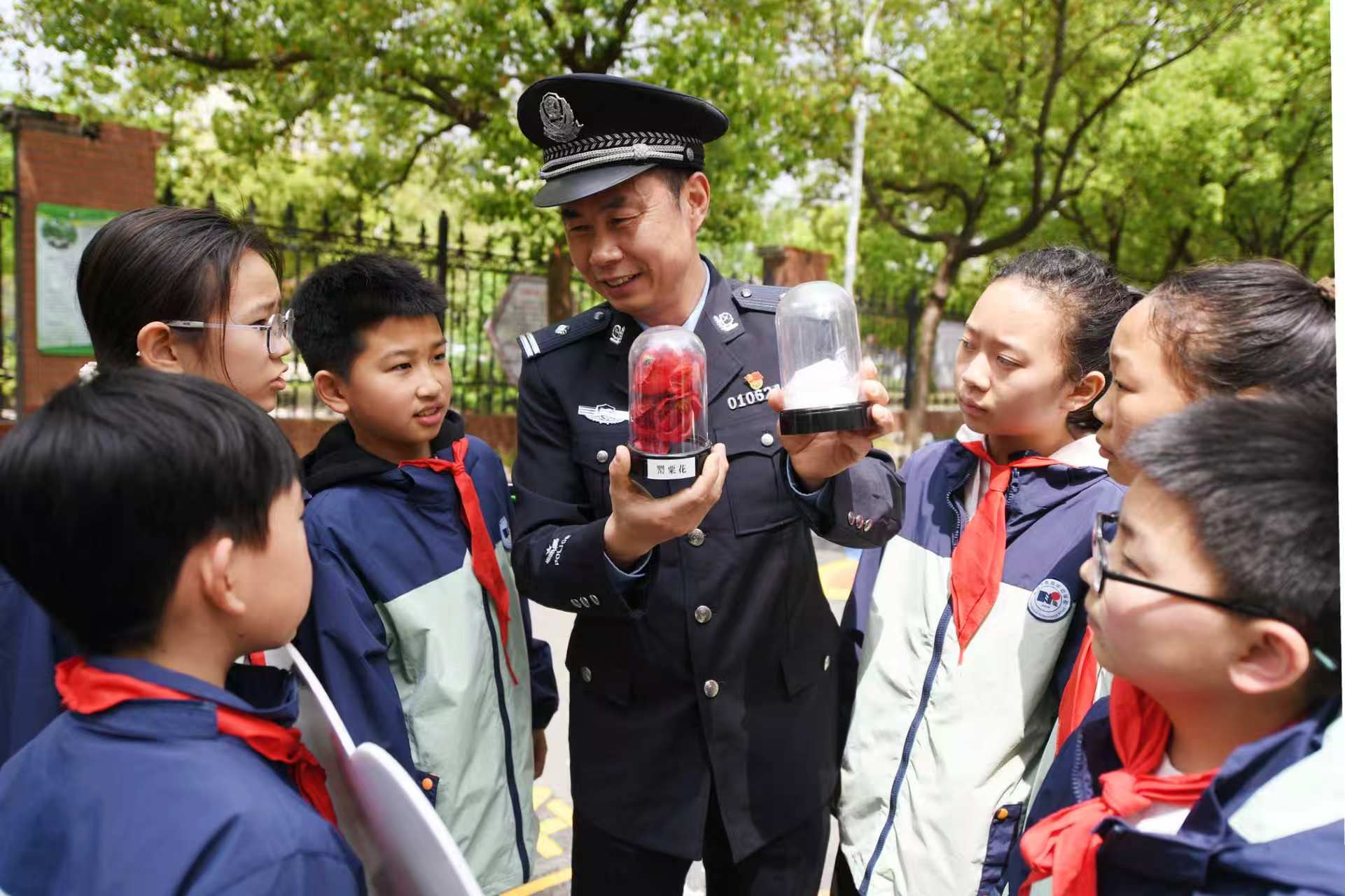 4月15日,芜湖市公安局弋江分局南瑞派出所民警走进辖区南瑞实验学校,通过宣讲、展示毒品模型、互动问答等多种形式,教育小学生识毒、防毒,远离毒品,筑牢校园禁毒防线。