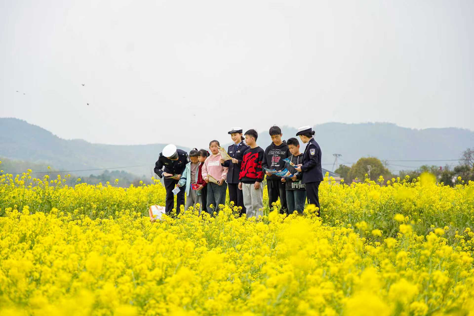 4月7日,南陵县公安局交管大队民警辅警深入弋江镇柿坝村田间地头,了解群众之需,并向他们宣传“一盔一带”、谨防酒驾、疲劳驾驶等交通安全知识,共护春耕安全生产。