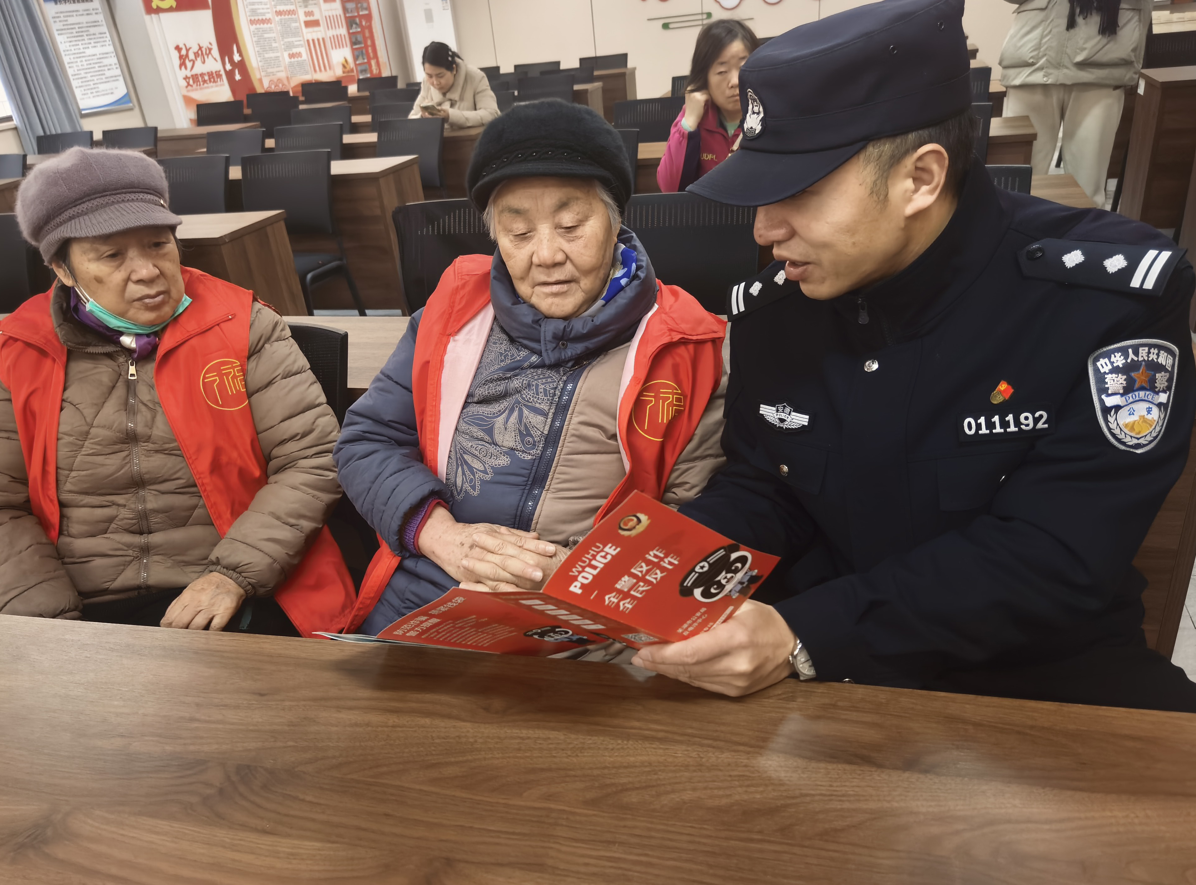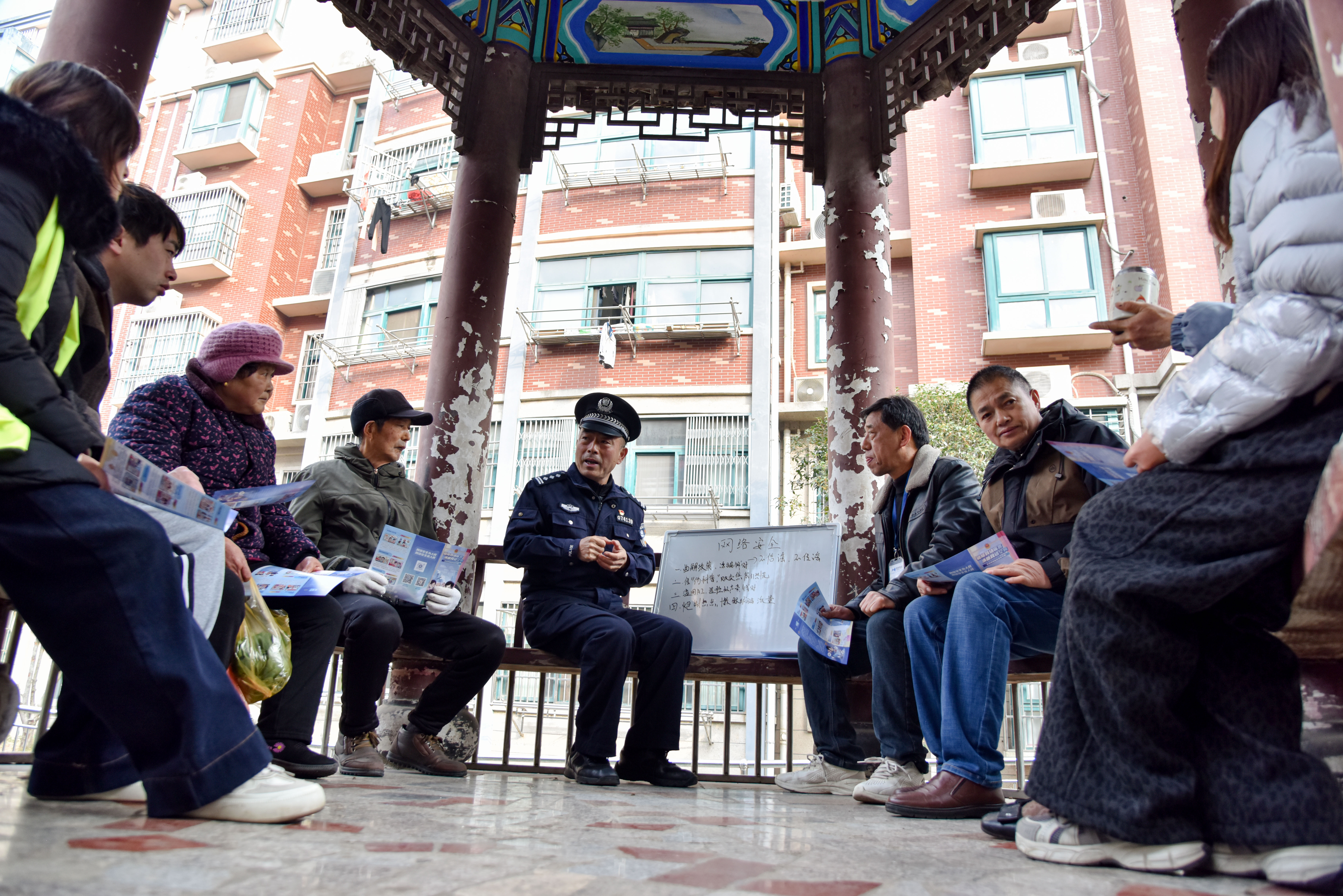 12月16日,芜湖市公安局弋江分局南瑞派出所民警辅警走进辖区小区广场,通过宣讲、散发资料等形式,向在老年群体宣传反诈等安全知识,守护“钱袋子”。