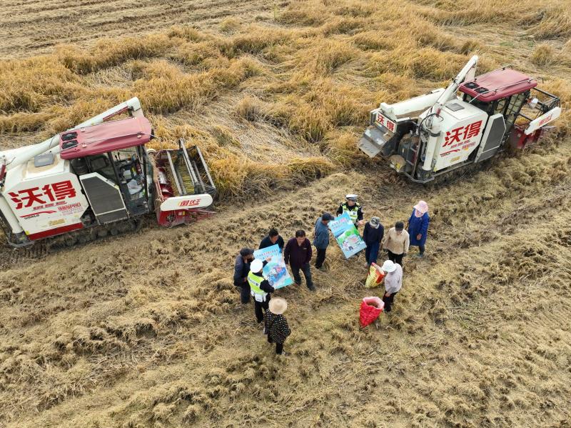 10月27日,芜湖市公安局交管支队高速公路三大队民警深入辖区合芜高速公路沿线—巢湖市半汤街道战前村,向村民宣传交通安全知识,共护秋收安全生产。