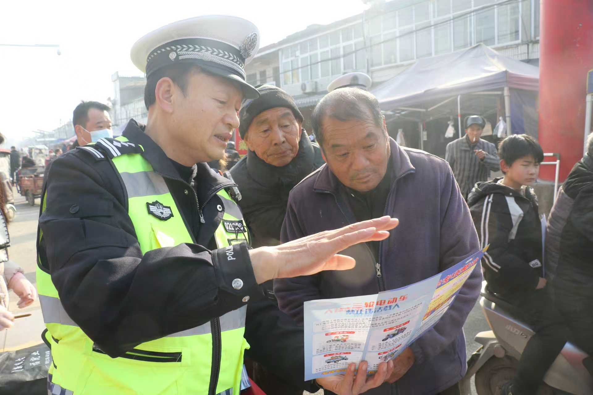2月2日,在凤台县凤凰镇双湖村集市上,该县公安局交管大队民警辅警向前来赶集的村民,发放交通安全宣传材料,讲解日常出行应遵守的交通安全常识,叮嘱他们出行时 ...