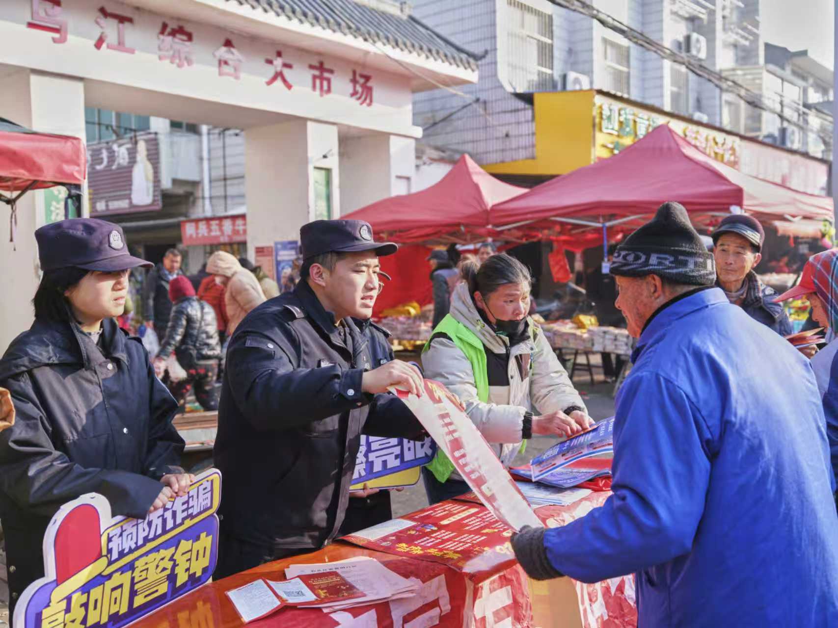 2月3日,和县公安局乌江派出所组织民警辅警深入辖区农贸市场,开展安全宣传活动。