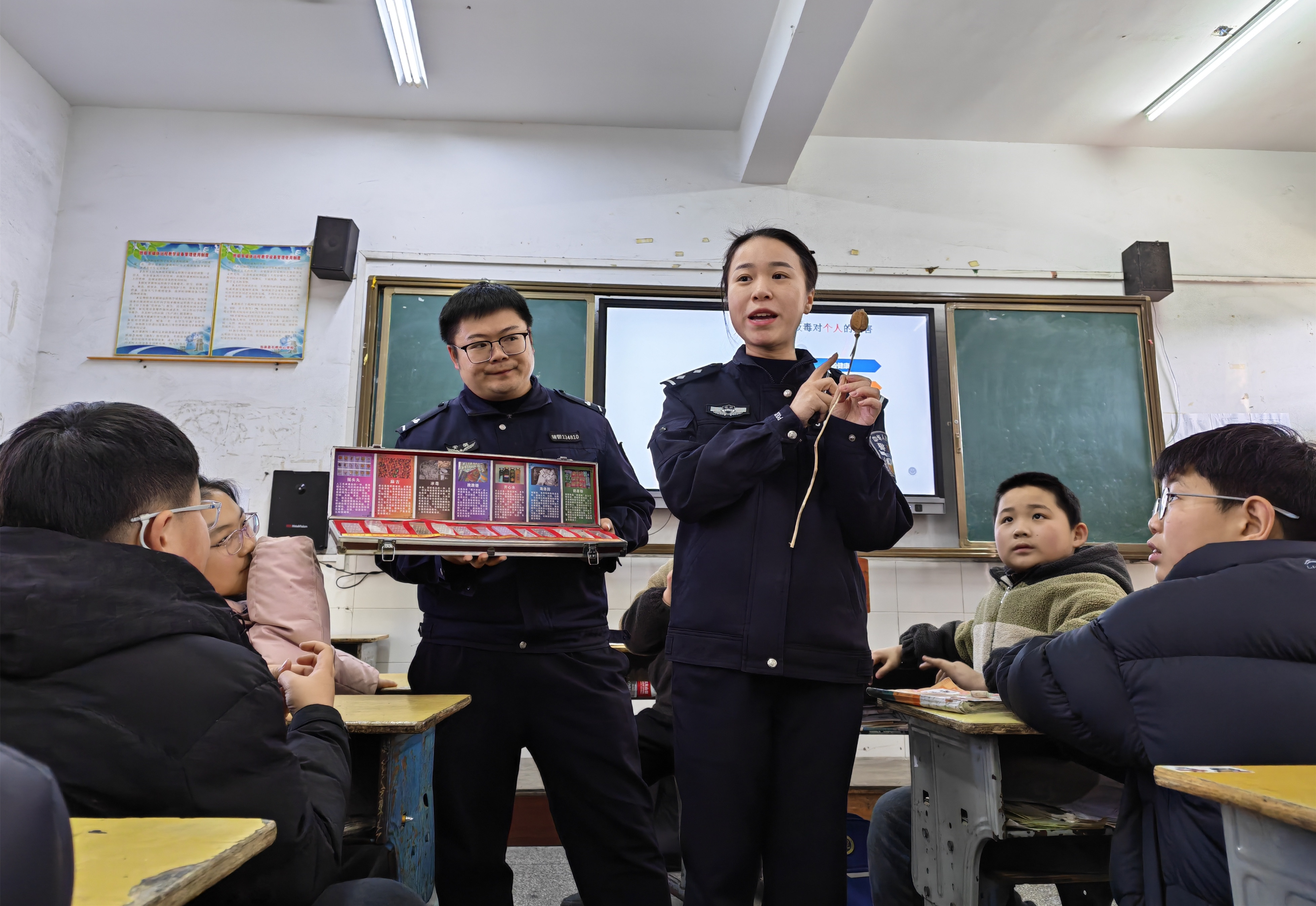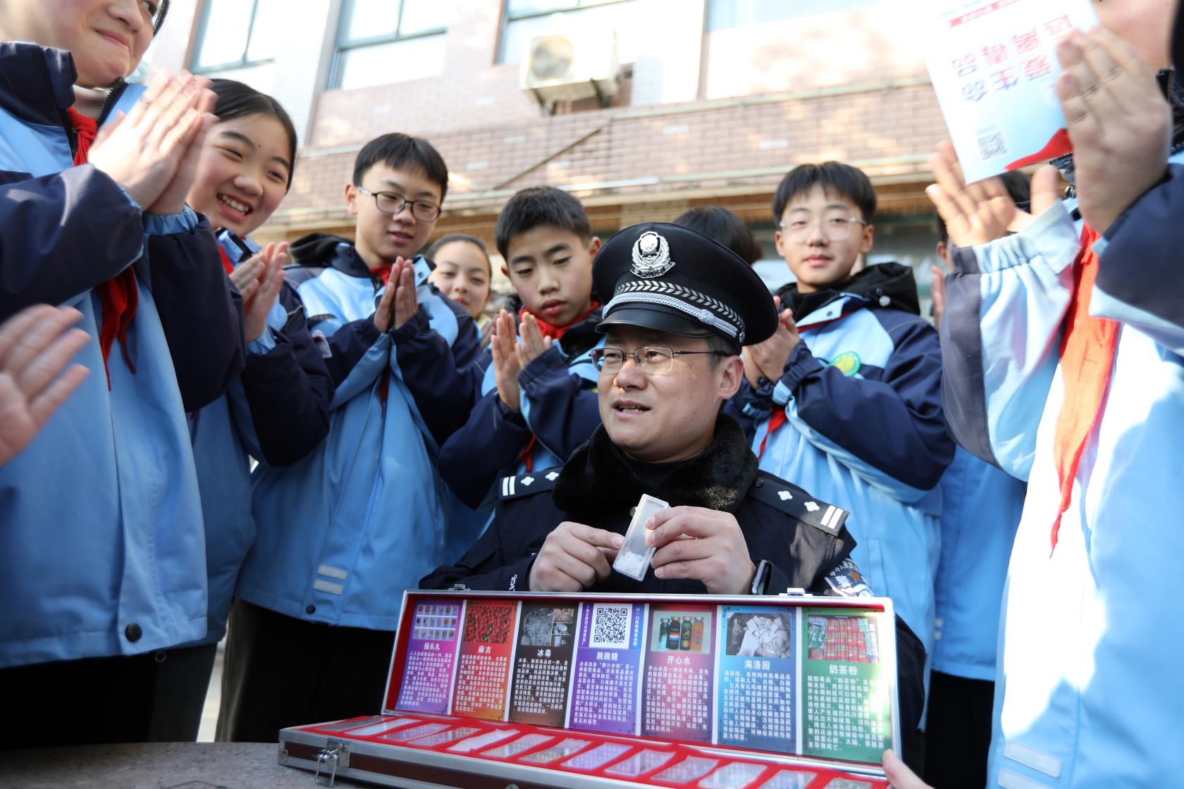 1月23日,当涂县公安局石桥派出所组织民警辅警走进辖区中学,开展以“警校携手平安同行”为主题的禁毒宣传活动。民警利用仿真毒品模具,向学生们讲解毒品的种类、危害及预防知识,切实增强...