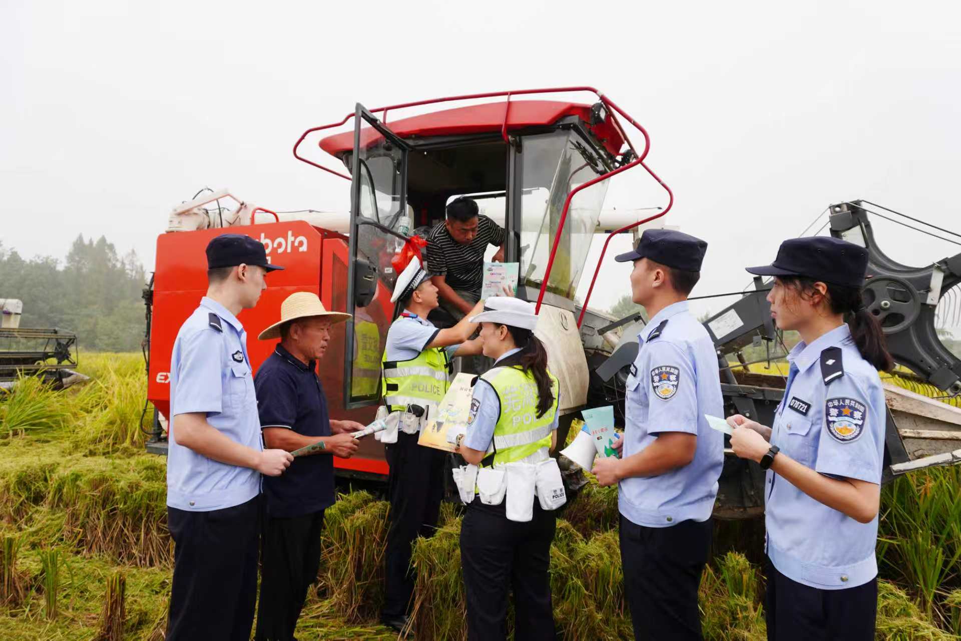 10月11日,芜湖市公安局镜湖交管大队联合镜湖分局荆方派出所组织开展“护航秋收守护平安”活动,将平安守护延伸到田间地头。