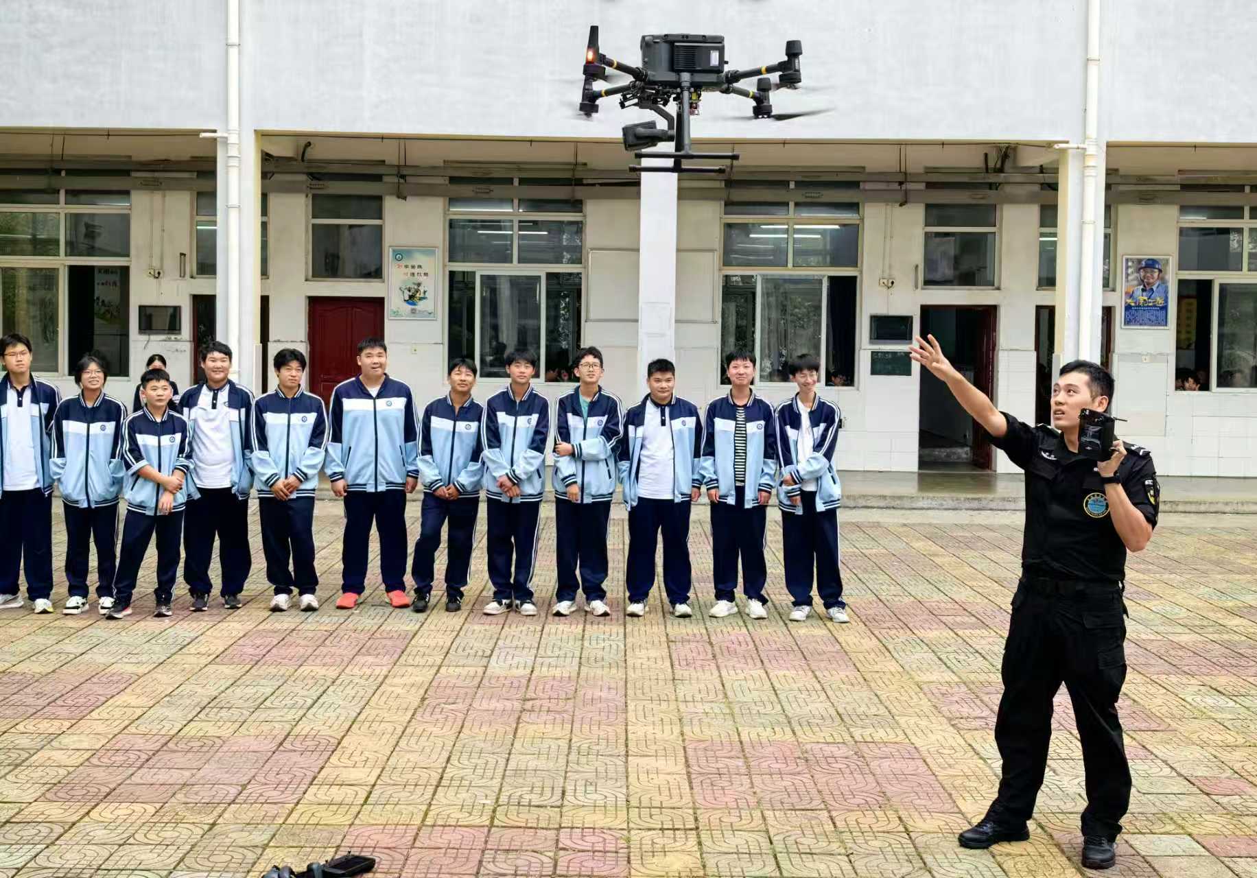 10月15日,当涂县公安局特巡警大队警航中队民警走进该县经贸学校无人机专业班,以“理论+实操”模式为学生带来一堂生动的低空实践课。