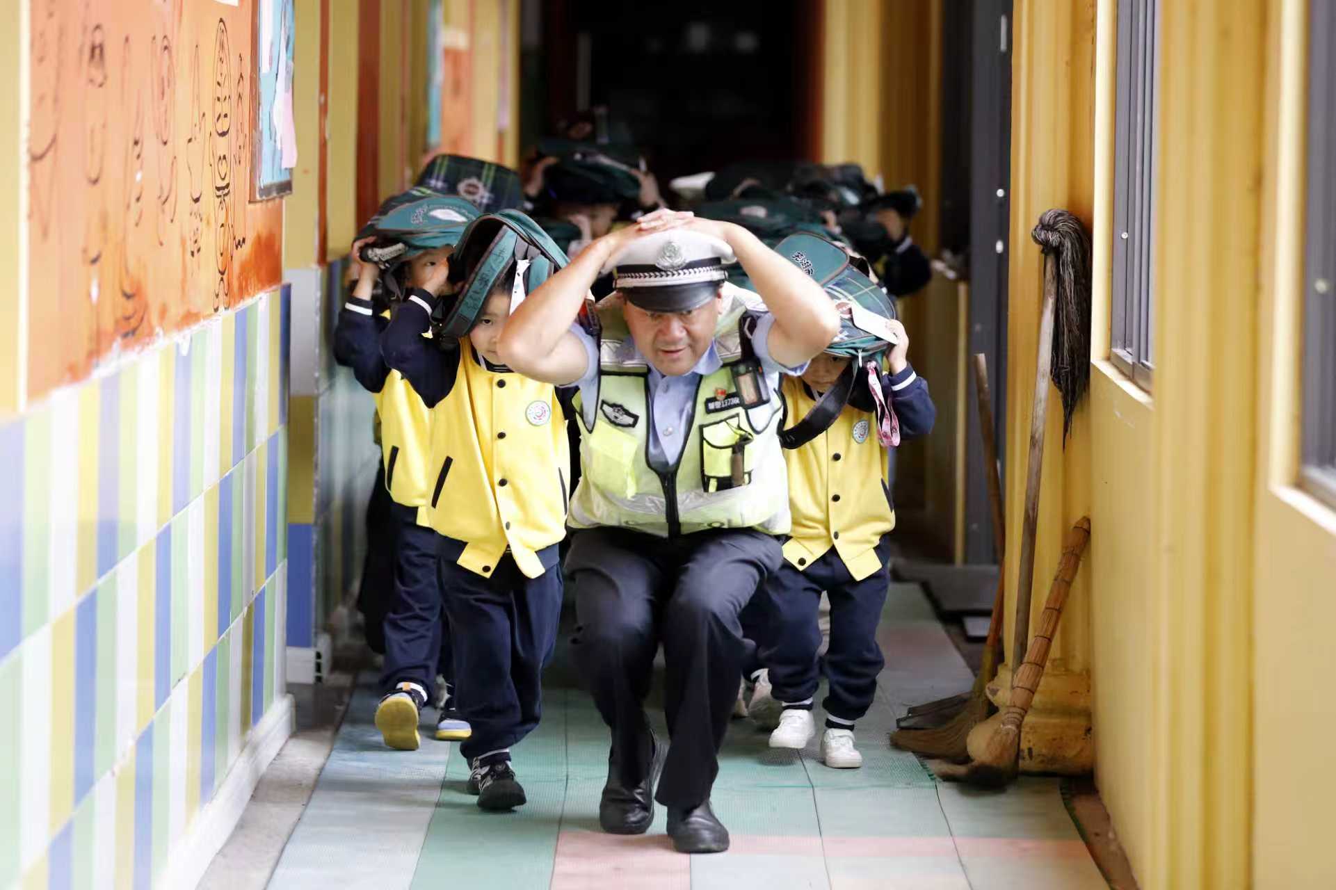 10月13日,是第36个国际减灾日,芜湖市公安局交管支队鸠江大队民警辅警,走进辖区幼儿园,开展应急疏散演练,旨在提高师生应急避险与安全自救能力。