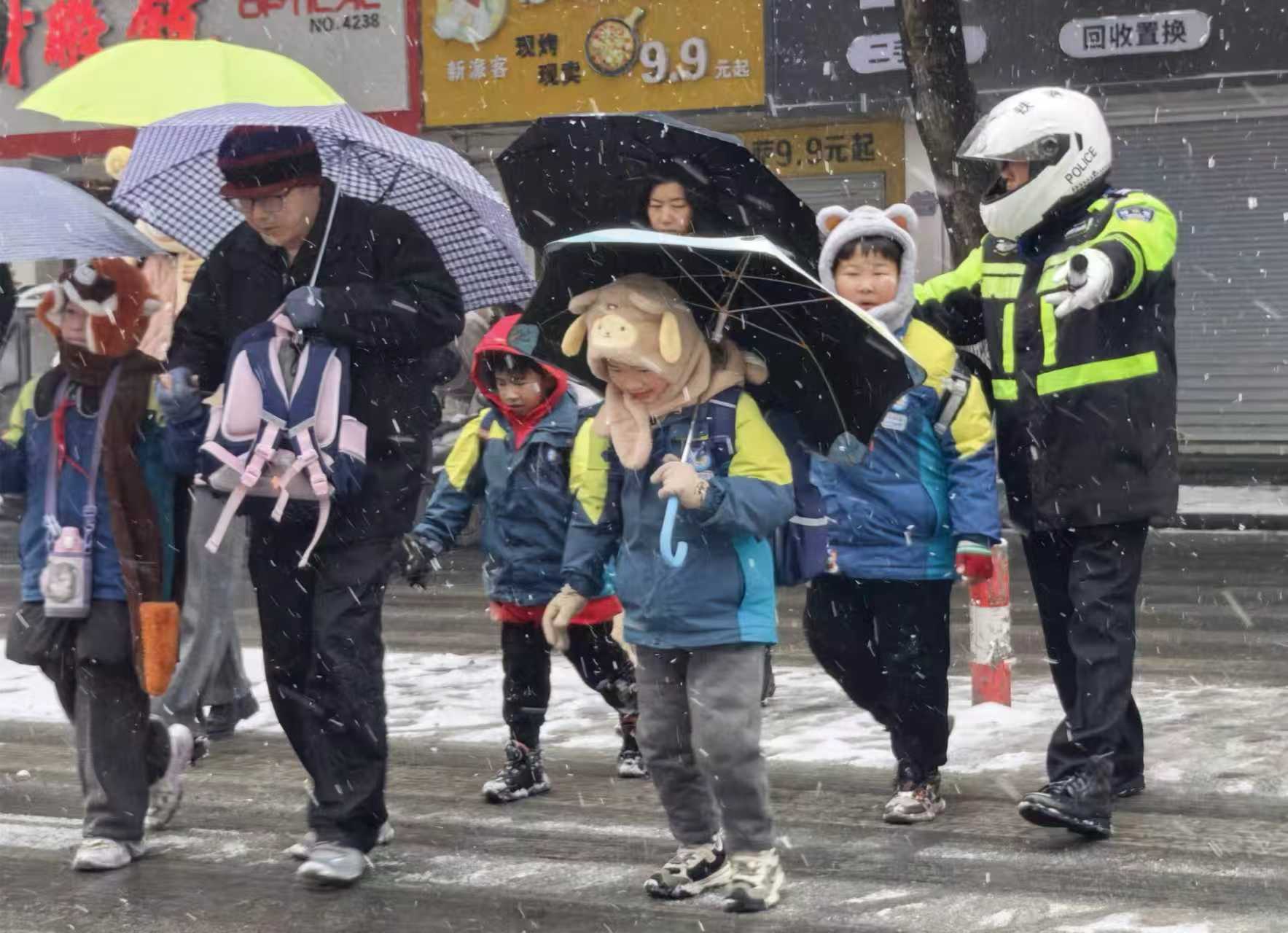 1月20日,芜湖市主城区迎来风雪天气,该市公安局交管支队弋江大队全警上岗,疏导交通,服务市民,做好安全宣传工作,确保辖区道路畅通有序,市民平安出行。