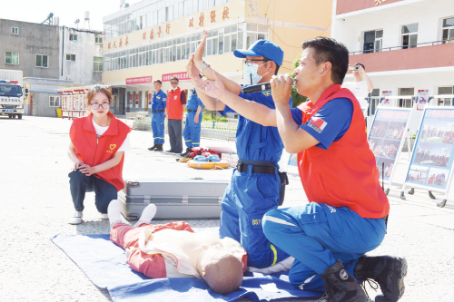 法治安徽网讯 6月4日,灵璧县冯庙中心学校、共青团冯庙镇委、冯庙镇妇联联合灵璧县蓝天救援队在冯庙小学宣传防溺水知识,并举行现场应急救
