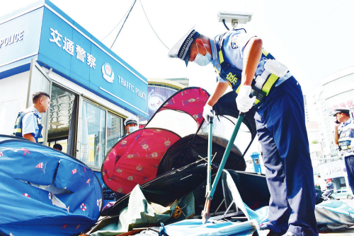 法治安徽网讯 8月18日,阜南县公安交警联合城管执法人员在城区主要路口,拆除电动车违规安装的遮阳伞。针对电动车违法安装遮阳伞致人伤害