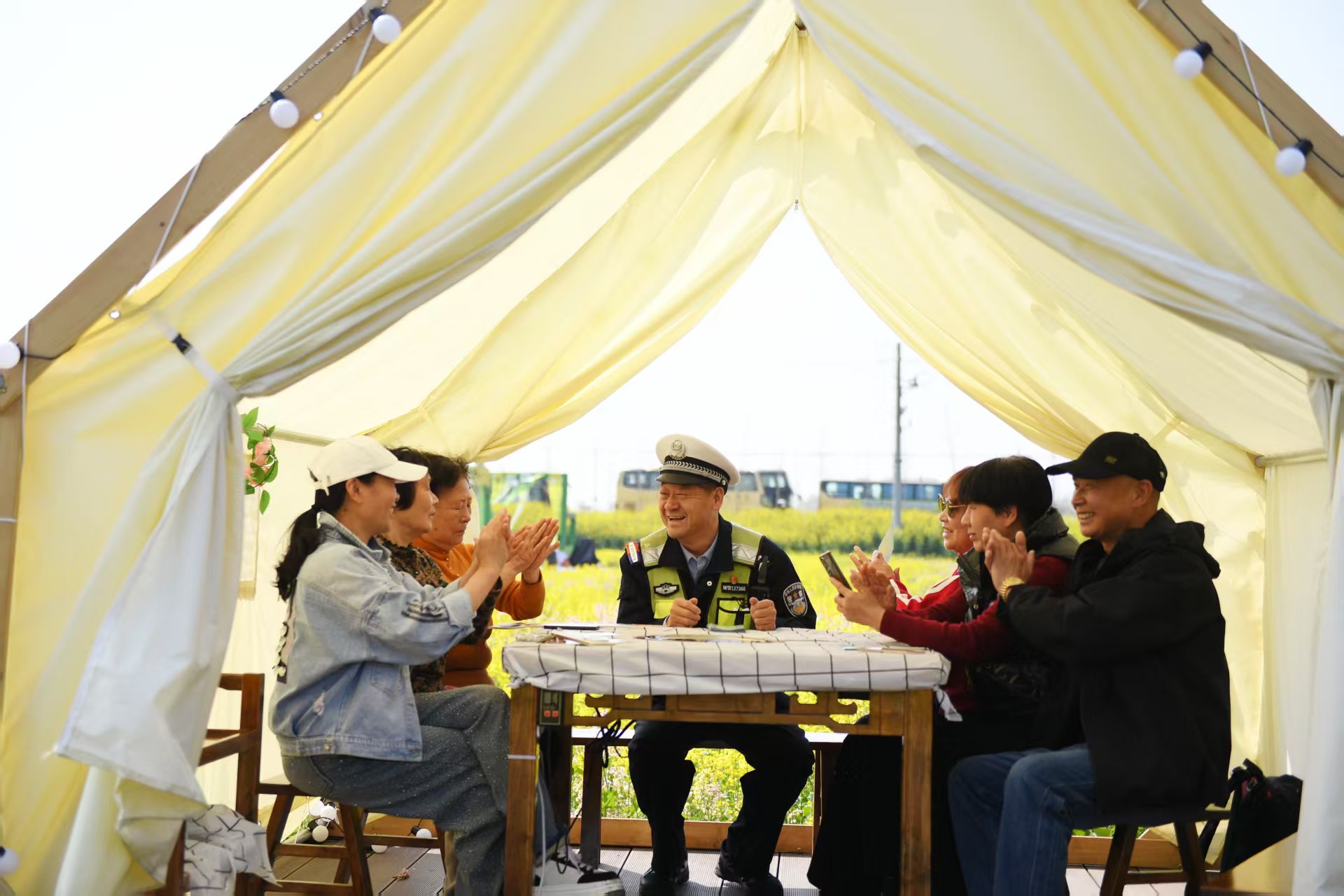 3月29日,芜湖市公安局交管支队鸠江大队联合辖区派出所民警辅警,走进白茆镇套北村油菜花海,在加强景区巡查、服务市民游客的同时,向群众宣传“一盔一带”、反诈等安全知识,共护景区平安。