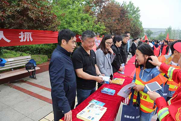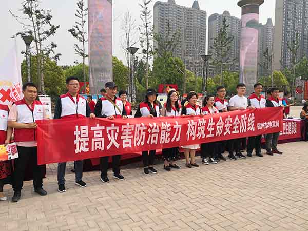 ▲宿州市地震局在三角洲公园和平广场上开展集中宣传活动