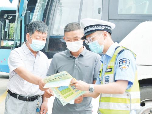 法治安徽网讯 6月16日为全国安全宣传咨询日,连日来,明光市公安局交警大队积极开展“七进”法治宣传工作,将交通安全知识宣传到家家户户,提升市民安全防范能力。图为交警深入长途汽车站宣传安全知识。