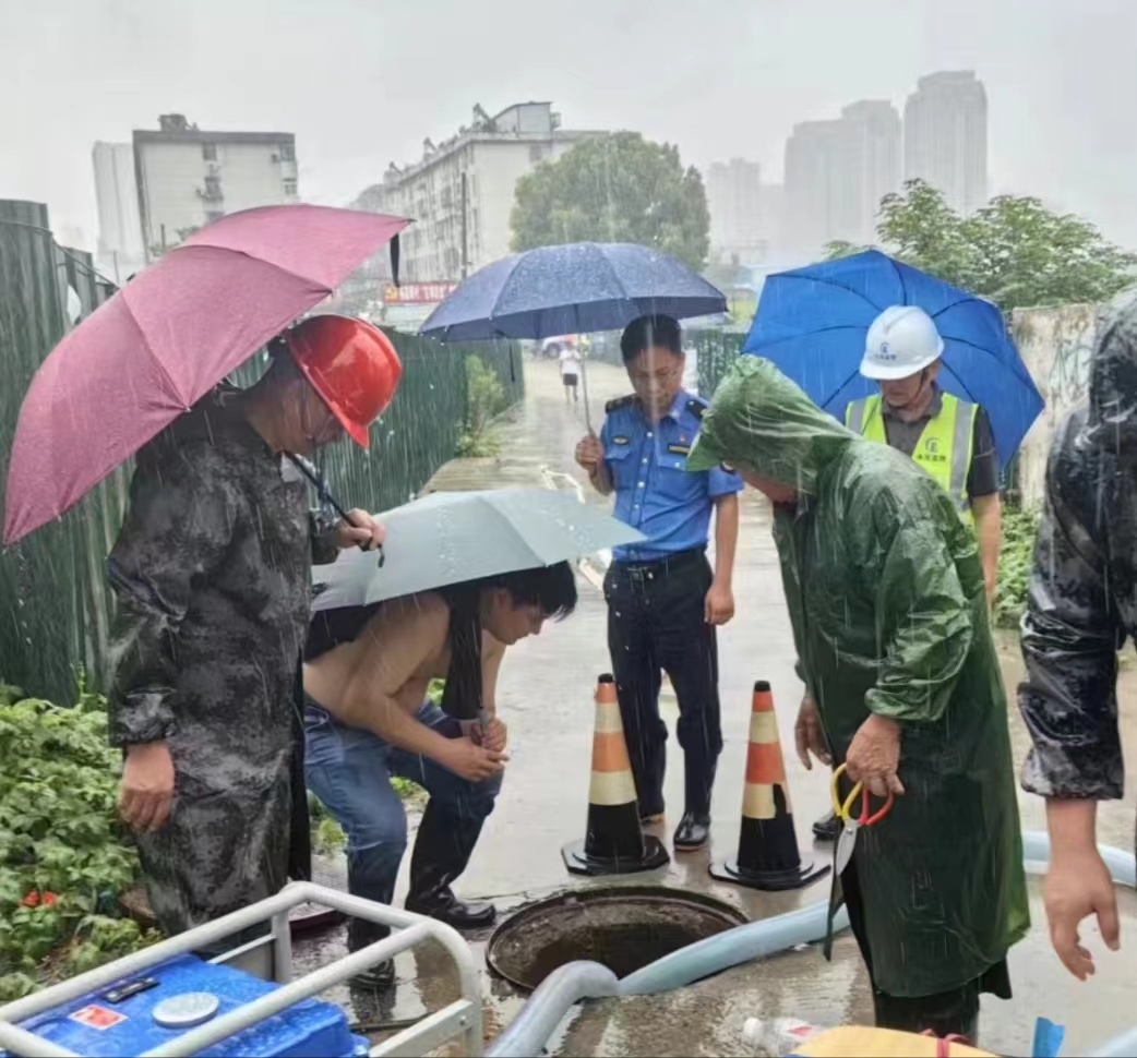 为应对强降雨,城管部门加强对重点区域、道路的检查力度和巡查频次,确保及时有效应对突发事件,筑牢防汛安全线。雨势较小时,采取动态巡查机制,城管队员往返各个路段易积水点位,反复查看是否有积水、行人车辆是否能够正常通行等,并拍照记录、建立防汛巡查台账。遇雨势较大情况,则采取蹲点值守、随时排水的工作方式,在巡查中发现积水立即设置安全预警装置,提醒周边人行车辆避险。同时,执法队员还对户外广告牌、指示牌等进行了拉网式排查,对排查中发现存在安全隐患问题,助力商家对受损设施予以维修、拆除、更换。