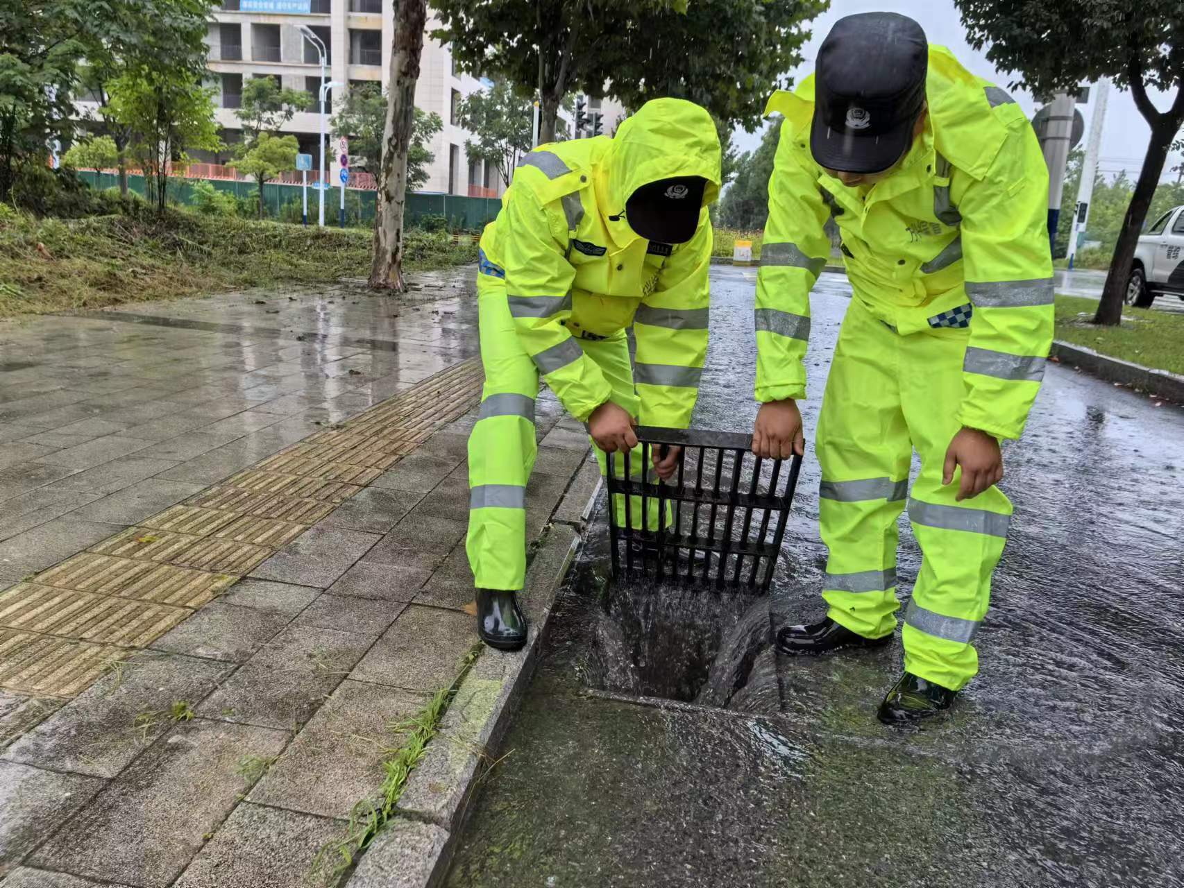 城管队员们对辖区道路的18个易涝点、4个下穿桥、雨水篦子、在建工地等展开“地毯式”排查,及时发现并处置问题,清理堵塞排水口,在管涌处设置醒目的警示标识,对难以解决的问题及时上报,确保防汛工作扎实、有序。同时,严格落实 24 小时值班值守制度,密切留意天气和道路积水变化,争分夺秒地巡查并处置突发情况,将风险隐患带来的危害降到最低,为辖区居民的生命财产安全筑牢坚不可摧的防护堤。