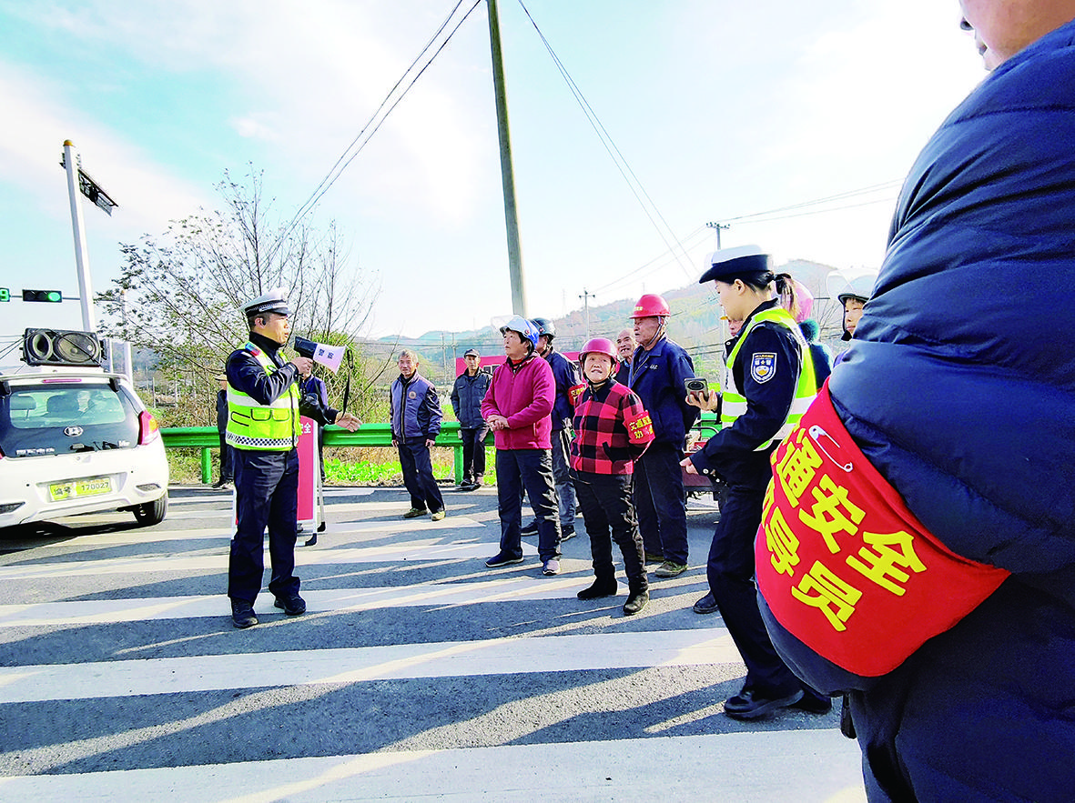 12月6日,舒城县公安局交警大队五显中队组织辖区交通安全协管员、路口劝导员及G105国道沿线村民开展现场交通安全教学。民警采取现场体验的方式,讲解交通安全法律法规,切实提升道路交通安全意识。(通讯员 李跃东 摄)