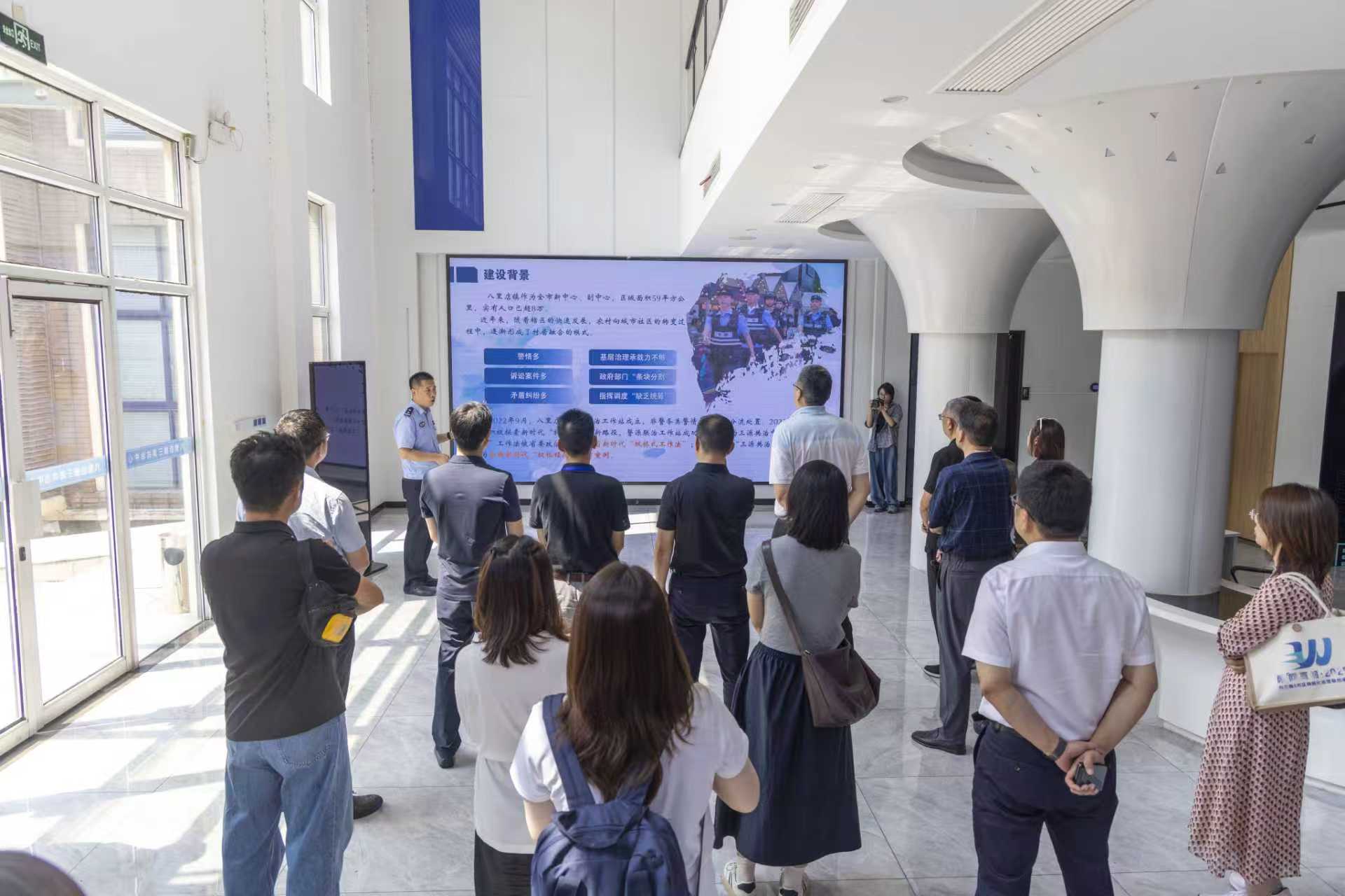 调研首站来到吴兴区八里店镇三源共治中心。走进这个现代化的治理中心,首先映入眼帘的是墙上实时跳动的数据大屏。在大厅另一侧的“徐根林调解工作室”里,正上演着温馨的一幕:楼上楼下两户居民因装修噪音问题前来求助,调解员徐根林耐心倾听双方诉求,晓之以理、动之以情,一步步化解彼此的心结,最终促使双方握手言和。