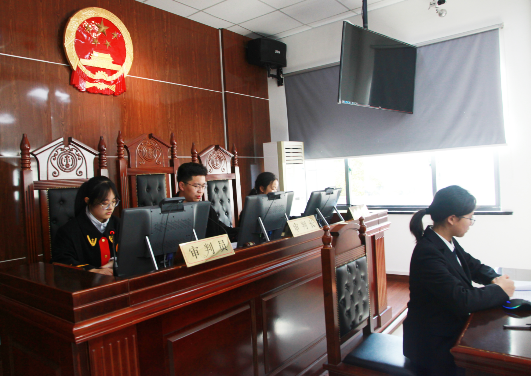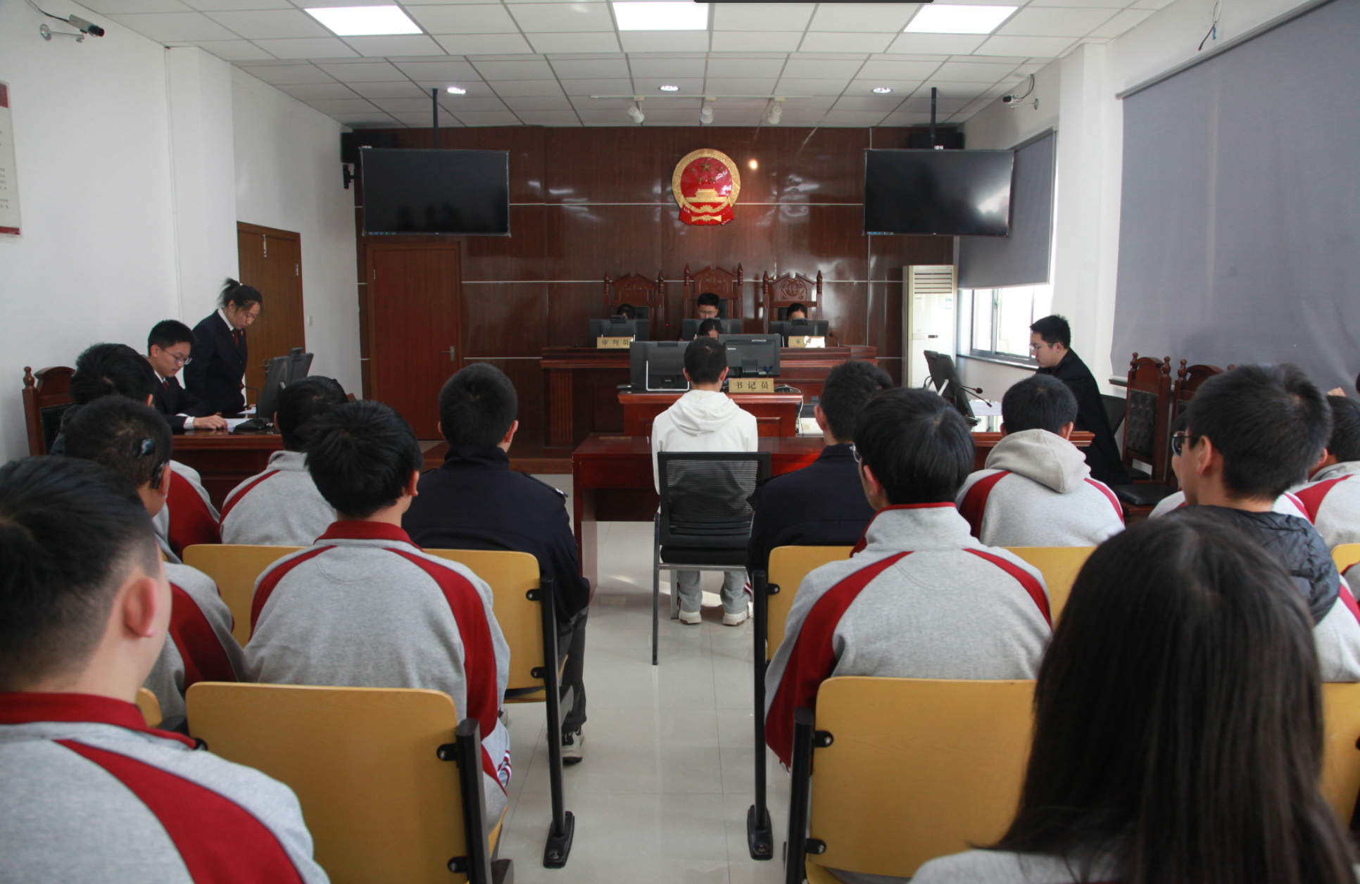 庭审直击,青春演绎司法庄严。“现在开庭!”随着“审判长”庄重的法槌敲响,模拟庭审正式拉开序幕。庭审现场,同学们迅速进入角色,严格按照真实庭审程序,依次开展法庭调查、举证质证、法庭辩论、最后陈述、当庭宣判及庭后教育等环节。