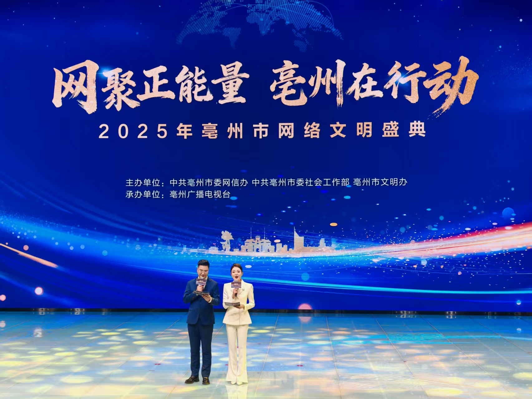 12月10日上午,“网聚正能量 亳州在行动”2025年亳州市网络文明盛典隆重举行。活动由亳州市委网信办、市委社会工作部、市文明办联合主办,通过优秀故事分享、沉浸式讲述、情景剧等丰富形式,全方位展现该市网络文明建设丰硕成果,传递网络文明与志愿服务理念。