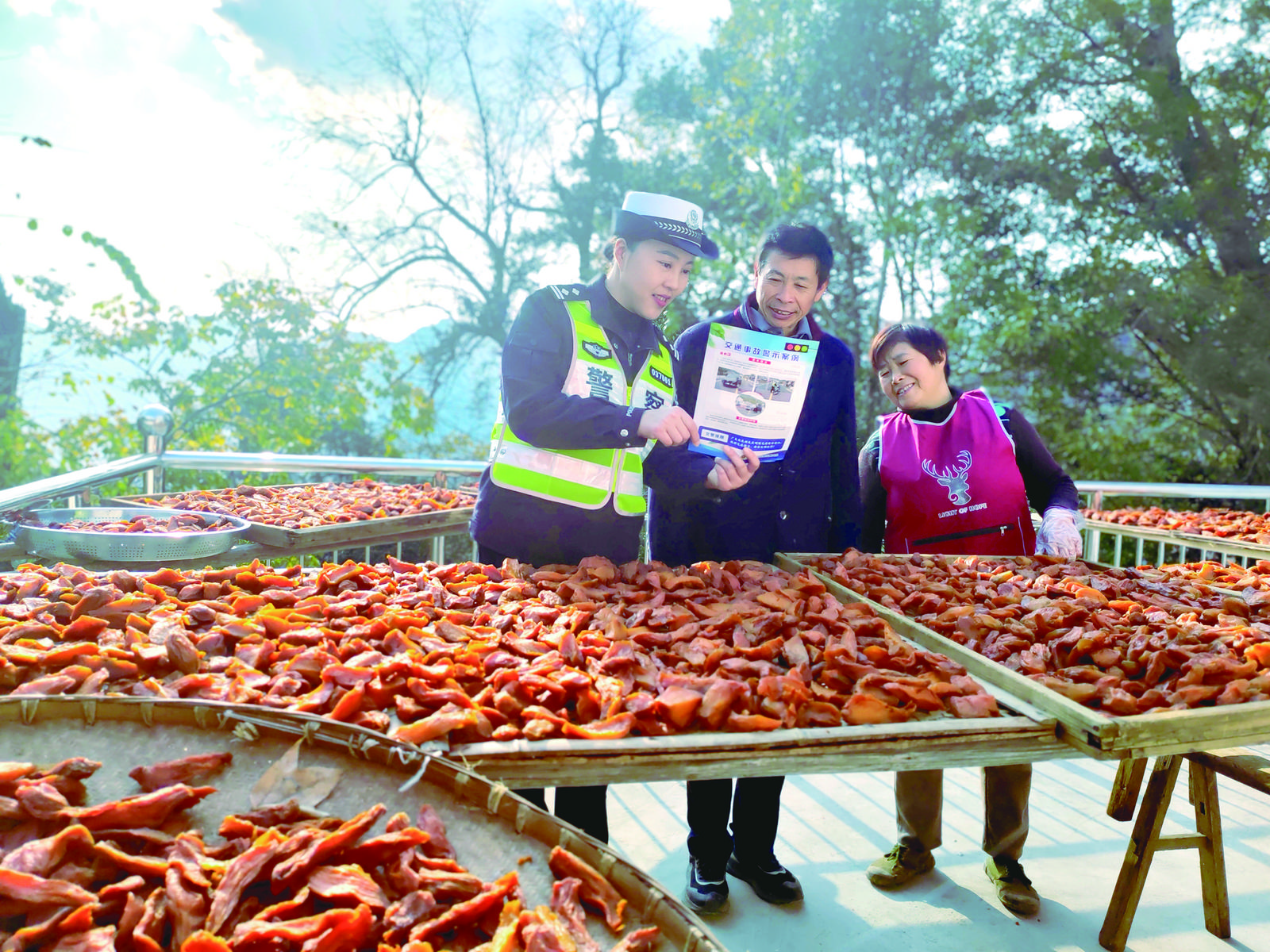 冬日暖阳洒满休宁县白际乡项山村的高山院落,村民们晾晒的山芋干铺满庭院。12月11日,休宁县公安局交管大队民警专程走进项山村,开展交通安全知识宣讲。活动中,民警结合山区出行特点,用通俗易懂的语言重点讲解山路安全行车技巧、三轮车违法载人危害等内容,为村民出行筑牢安全防线。(通讯员 吴瑕 边红梅 摄)