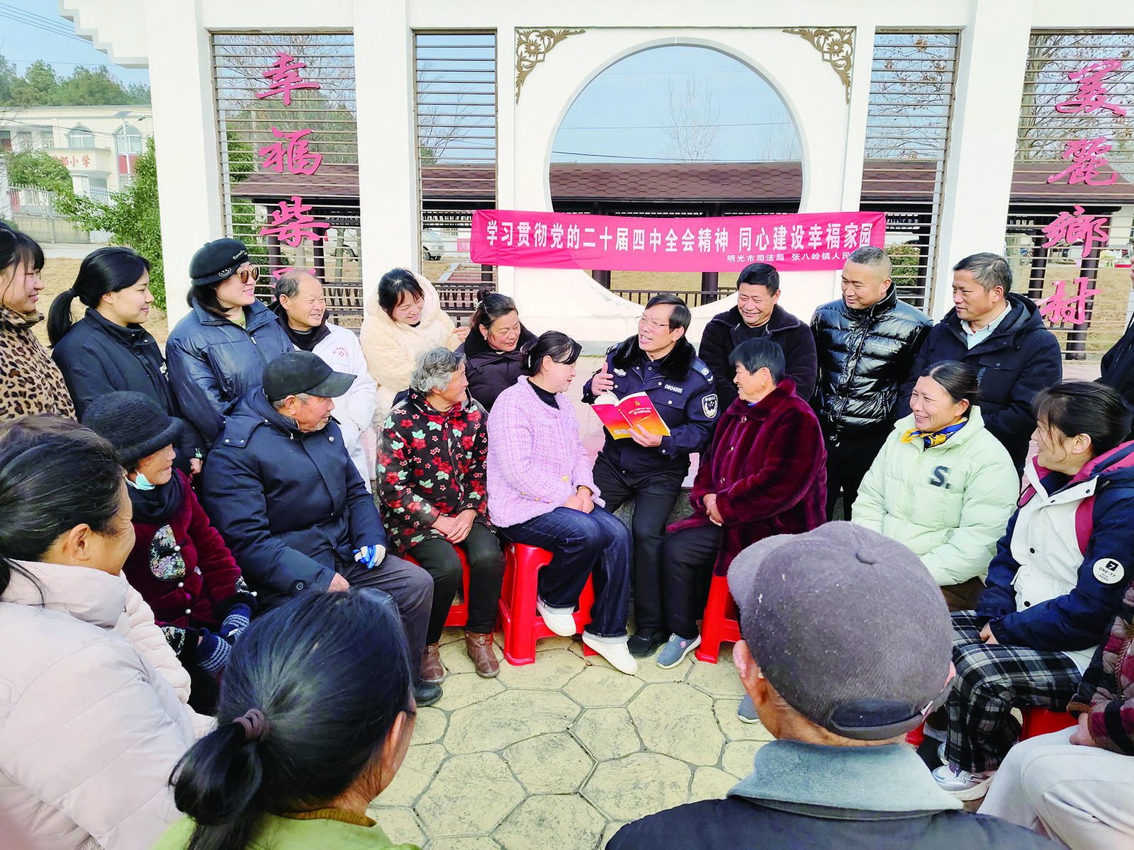 连日来,明光市司法局张八岭司法所干警、皖东先锋讲师冯德斌深入辖区,以“学深吃透政策,守护‘岁月静好’”为题开展学习贯彻党的二十届四中全会精神宣讲。宣讲将社会治理相关政策与法律法规融入日常生活场景,用通俗鲜活的语言为群众作出生动诠释,让政策精神真正走进基层、浸润民心。(通讯员 王菲 卢启云 记者 张青川 摄)