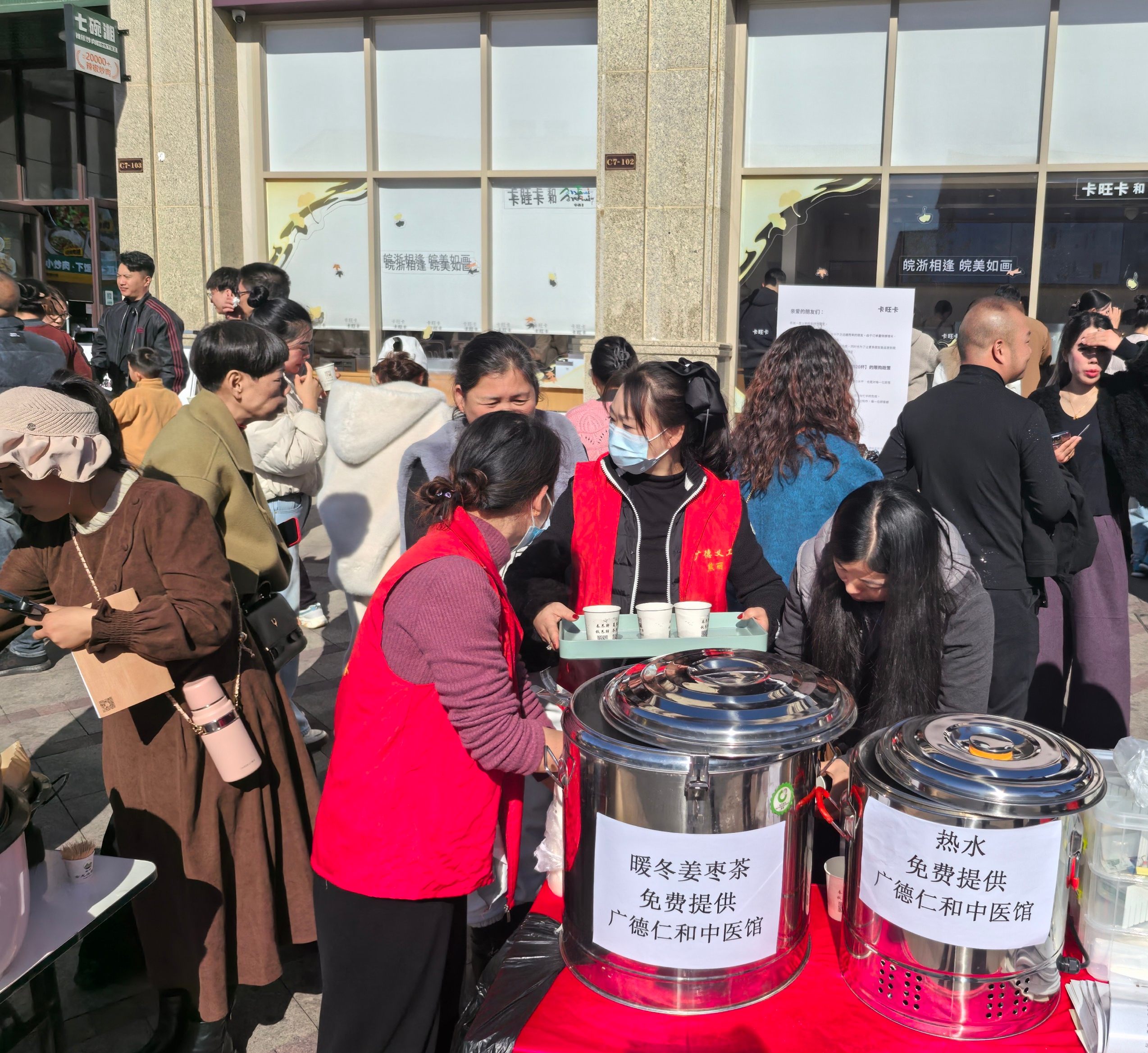 专业力量的注入,让这份温暖更具质感。市委社工部统筹协调下,义工联合会仁和中医志愿服务队的“暖心八件套”,成为寒冷天气里的“及时雨”。志愿者熊丽端着刚煮好的姜枣茶,逐一递到排队游客手中:“就想让排队的人从手到脚都暖起来。”来自南京的王女士捧着温热的茶水感动不已:“没想到这里的服务这么暖心,不仅吃到了美味,更感受到了这座城市的诚意。”