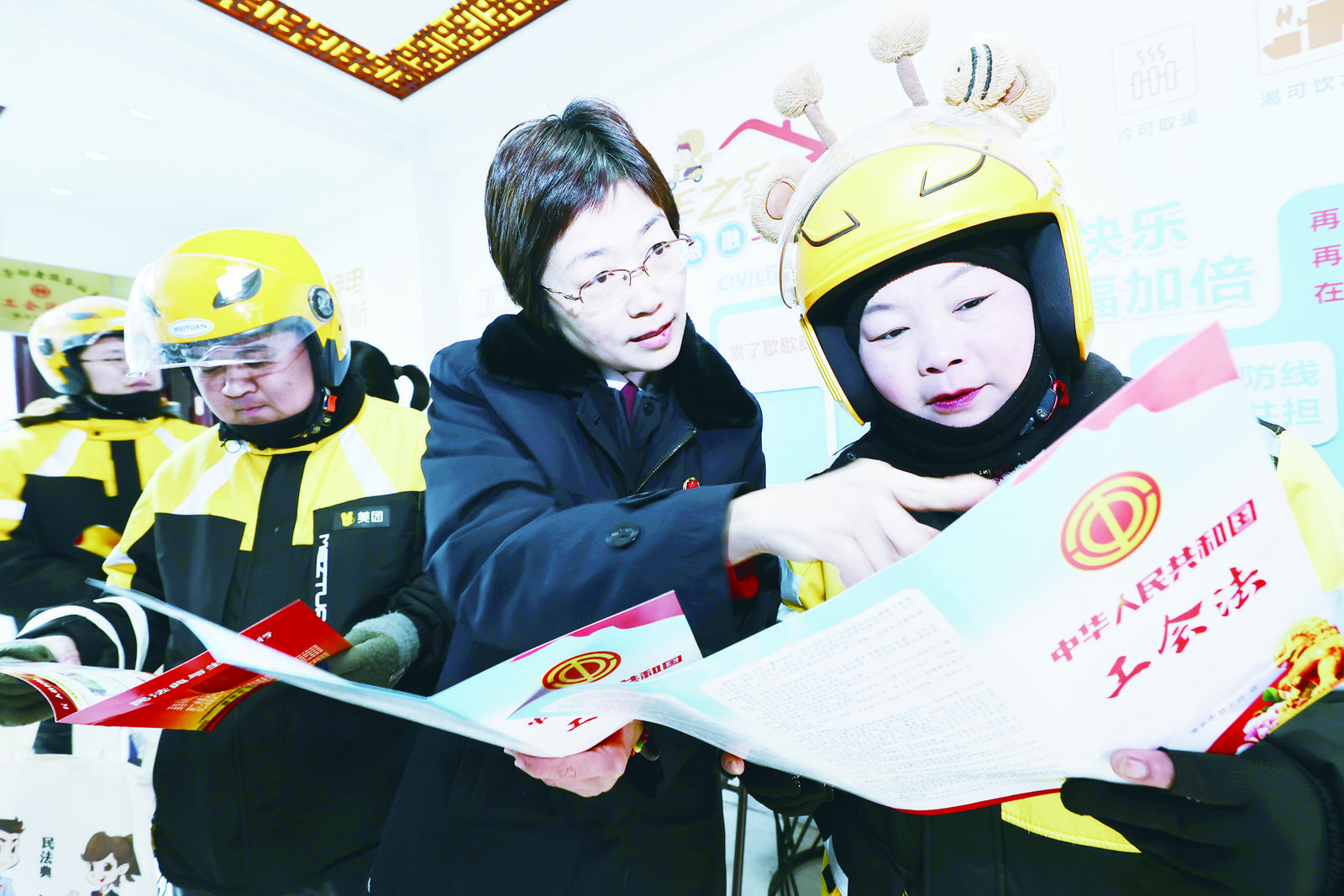 1月7日,淮北市总工会邀请市检察院检察官走进工会驿站,面向快递外卖员等新业态就业群体开展工会法宣传活动。活动围绕劳动争议解决、权益保障、法律援助等内容展开,帮助新业态从业者明晰劳动关系认定、工伤保险参保、欠薪维权等核心权益,切实提升其遇事找法、维权用法的意识和能力。(通讯员 张锋 摄)