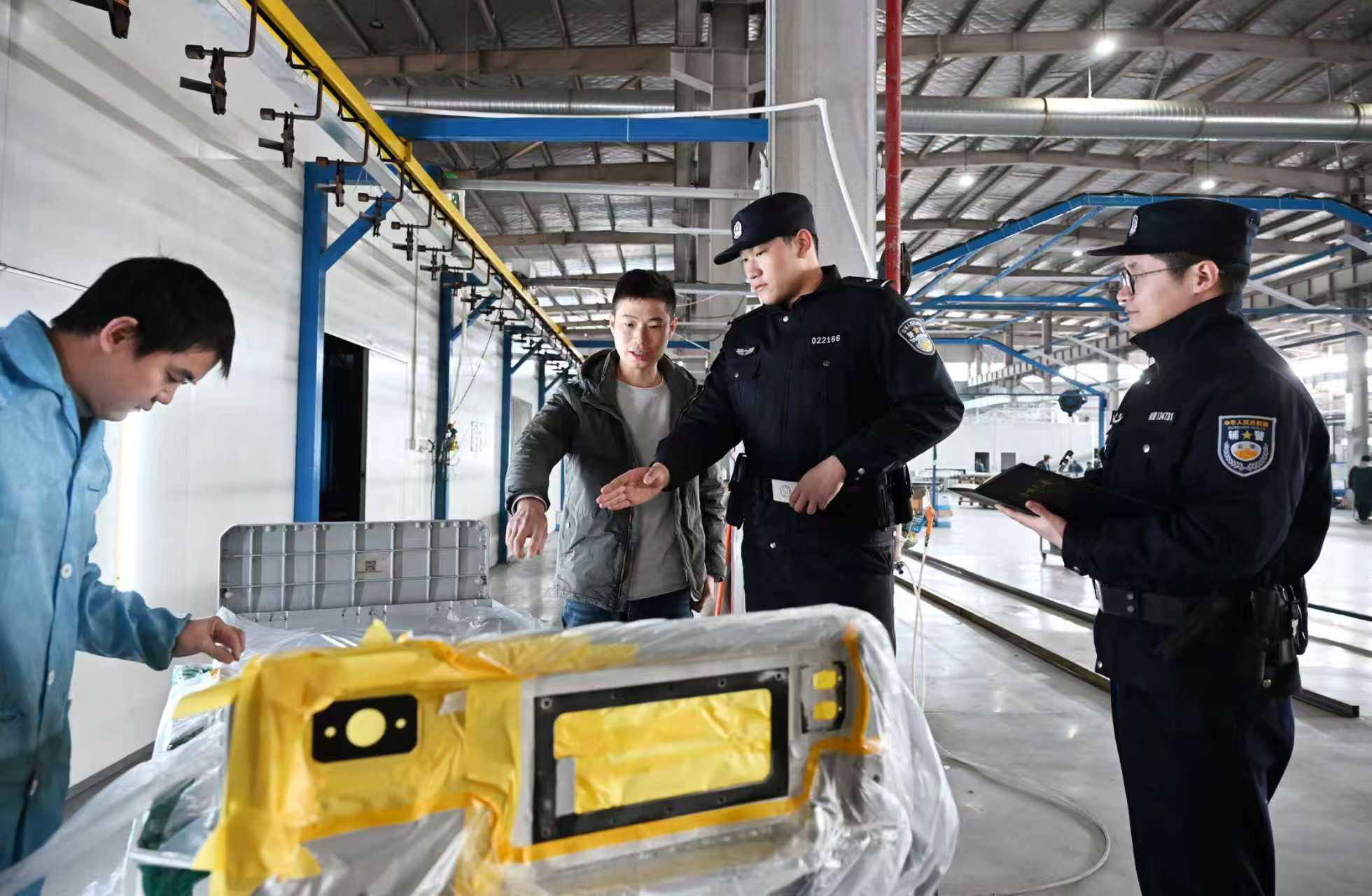 1月8日,当涂县公安局经济开发区派出所民警辅警深入辖区企业生产车间,宣传安全防范知识,全面筑牢冬季企业安全生产防线。