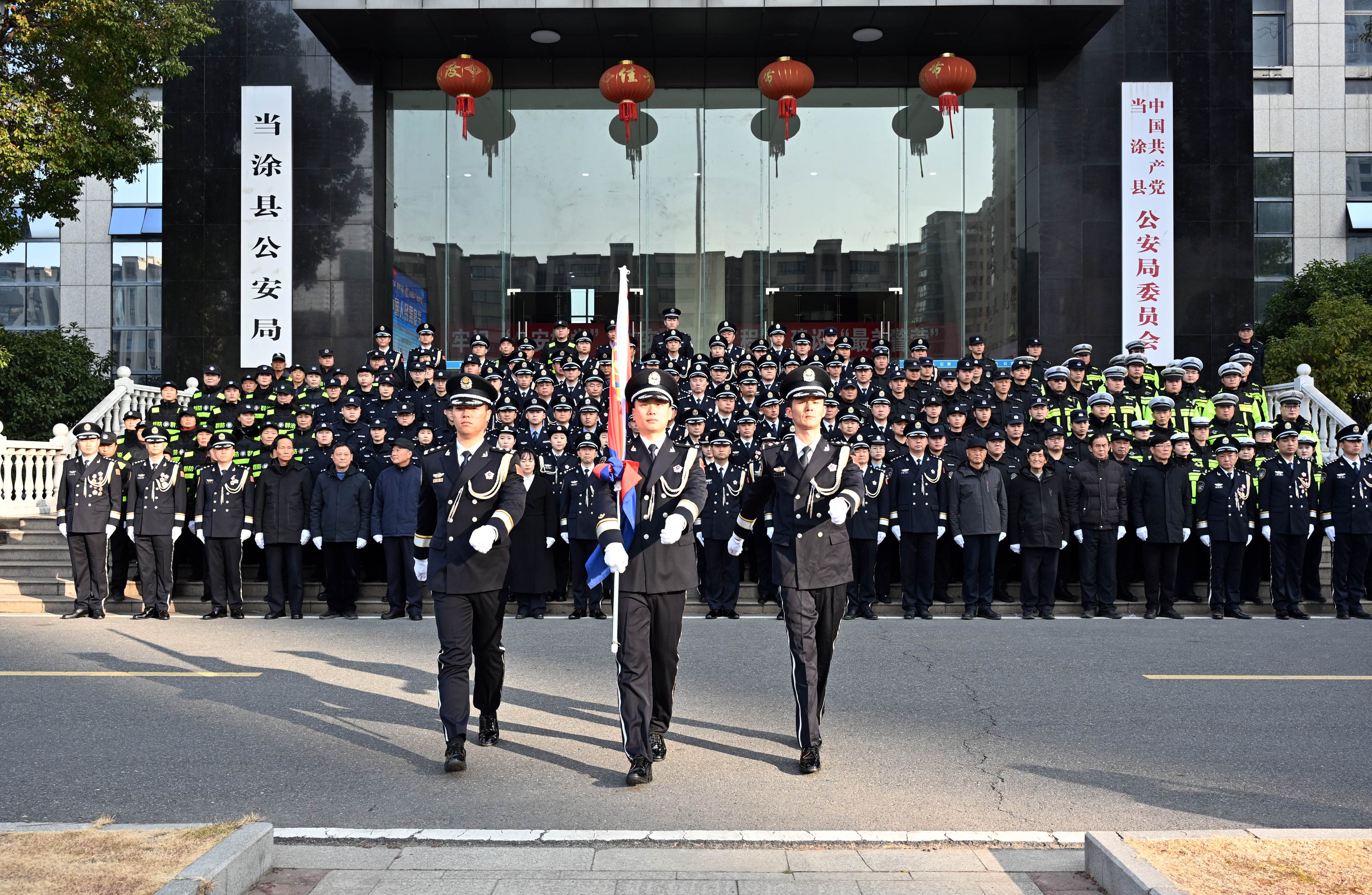 当涂县公安局举行升警旗仪式,重温入警誓词,庆祝第六个中国人民警察节。