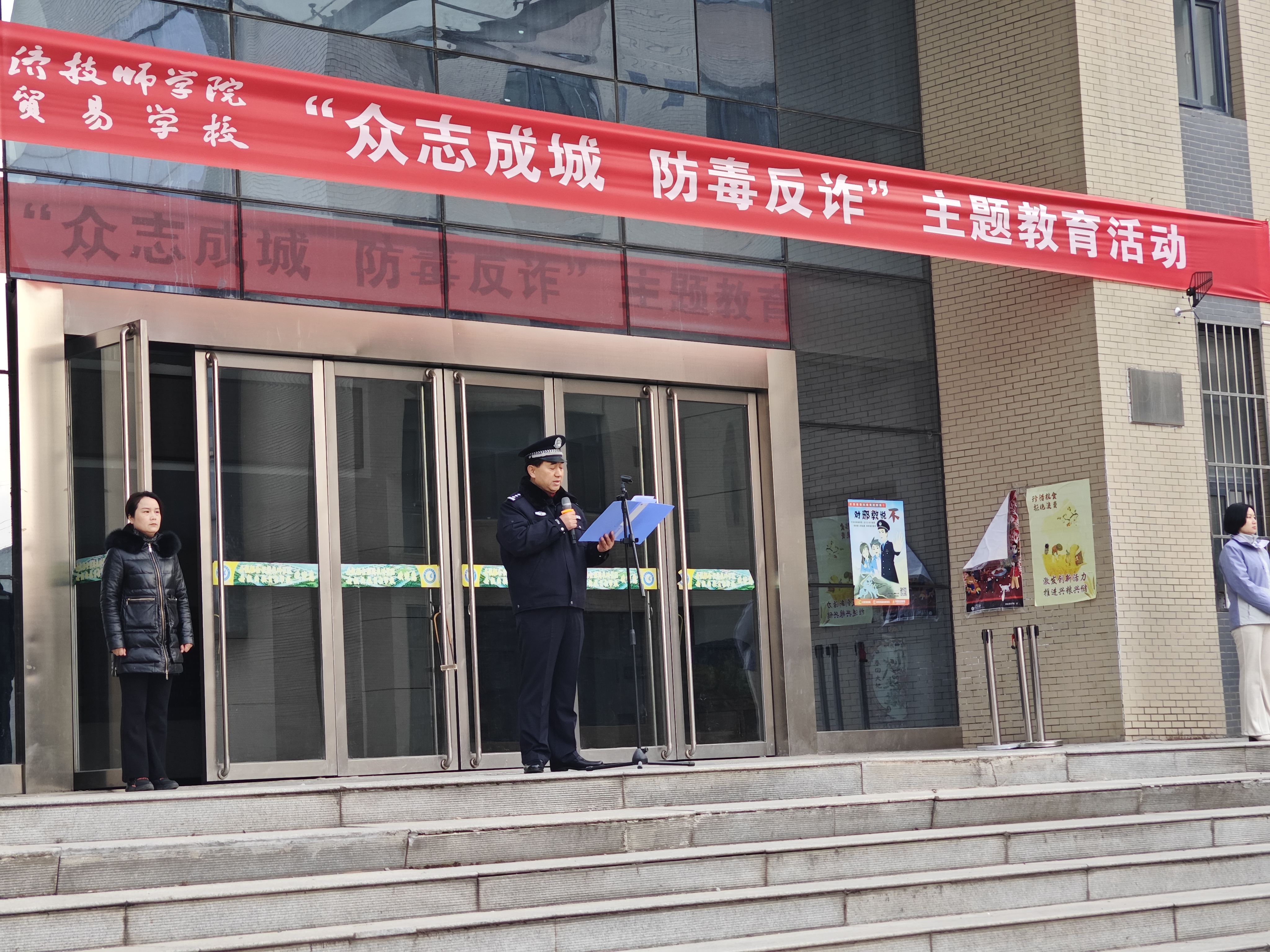 1月12日,蚌埠市公安局刑侦支队、蚌埠市和淮上区两级禁毒专项工作组、淮上分局刑侦大队等单位联合安徽科技贸易学校,在校区内共同举办“众志成城防毒反诈”主题宣传教育活动。
