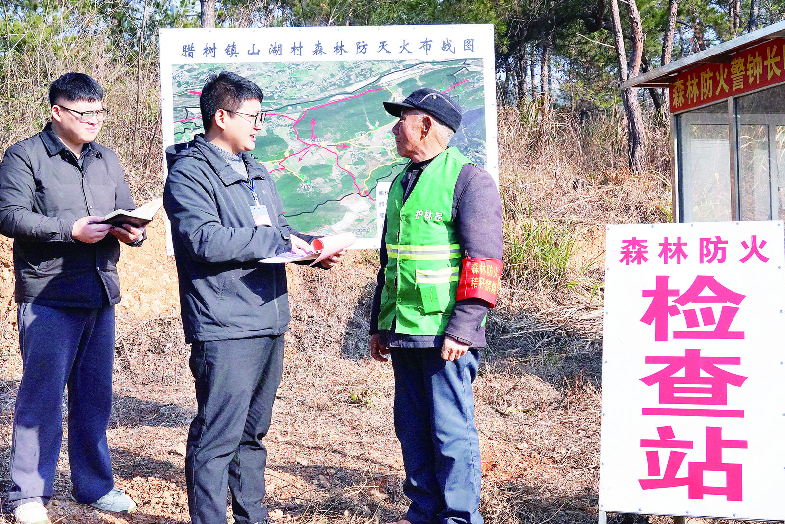 1月8日,怀宁县腊树镇人大代表深入一线,实地督查森林防火人员值班值守情况。该镇充分发挥人大监督职能和代表履职作用,常态化开展工作,紧盯薄弱环节、堵塞防控漏洞,切实守护好辖区的绿水青山和群众生命财产安全。(通讯员 檀志扬 邹佳庆 摄)