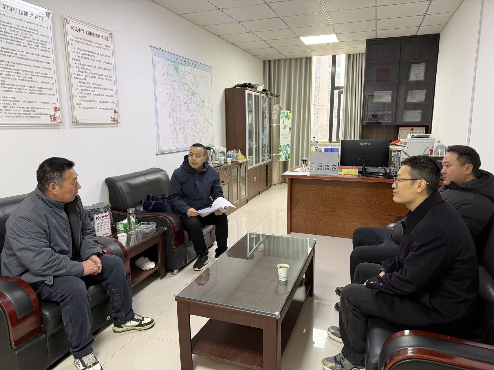 (图片:检察官与社区干部座谈了解情况)