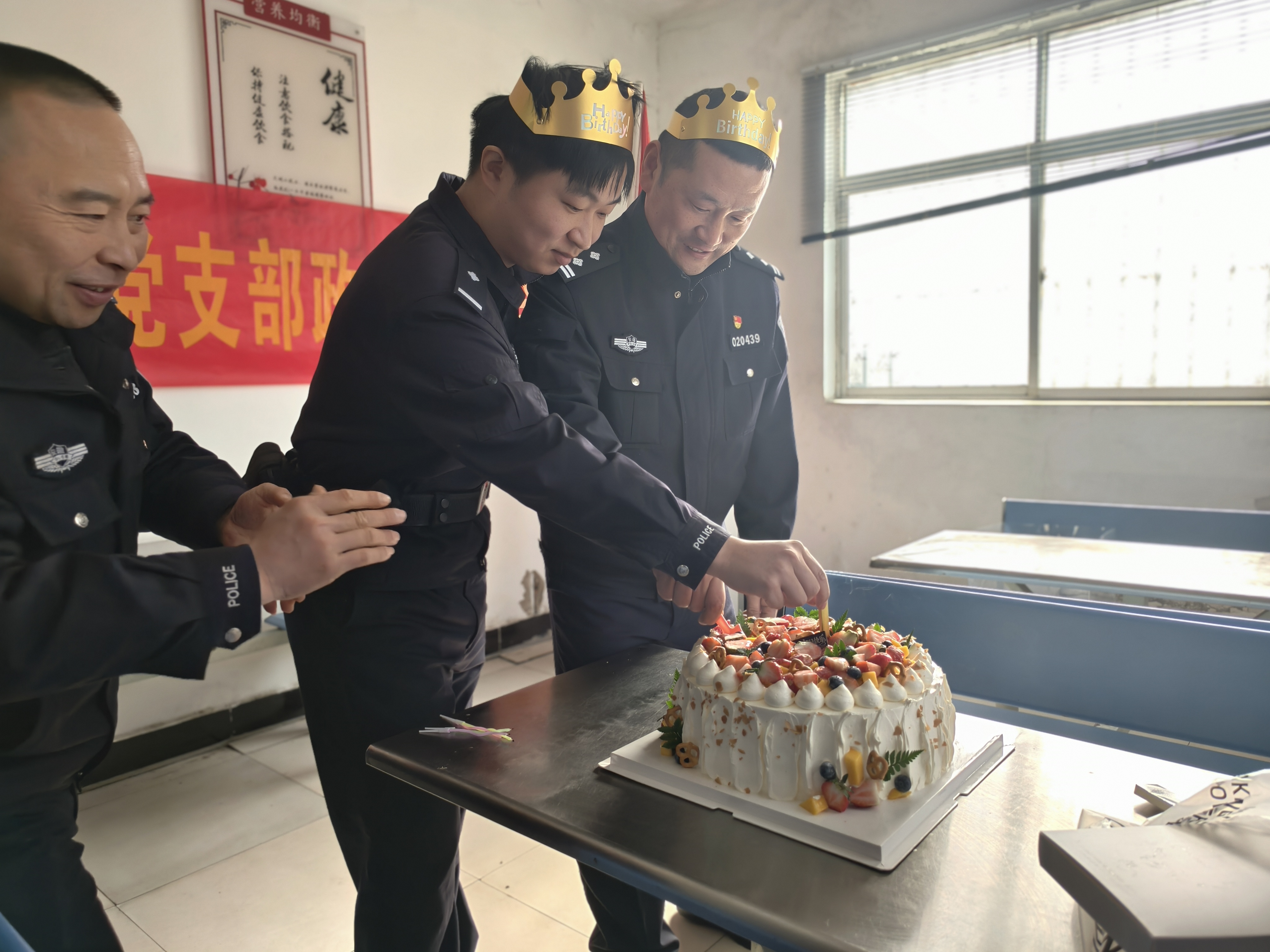 1月12日,2025 年新入职民警高宇祥在淮南市公安局潘集分局平圩派出所,与朝夕相处的同事们共度了从警生涯的首个生日。