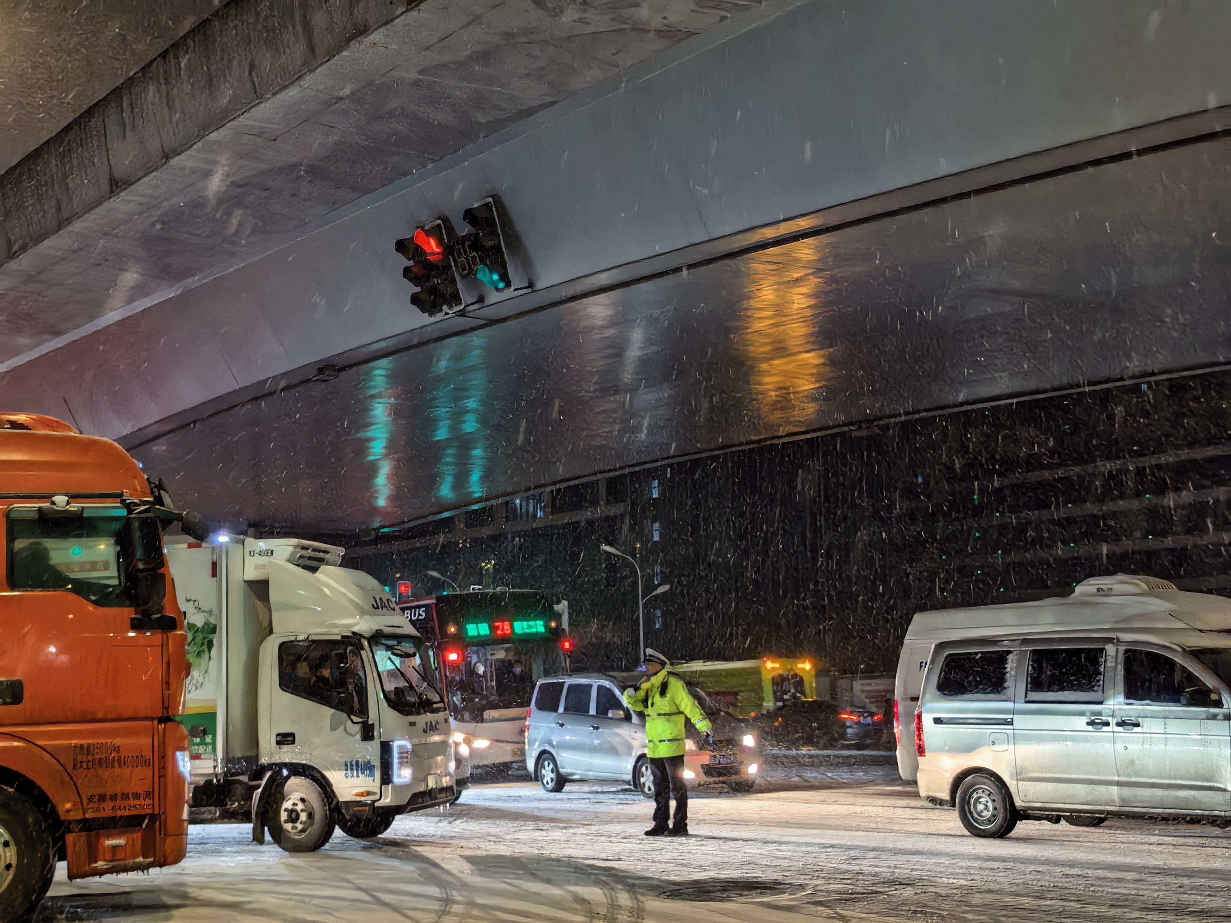 “这里是保障合肥市民餐桌供给的关键通道,每天都有大量货车往来。越是雨雪天气,越要格外关注。”王万乐呵着白气告诉记者,为了应对恶劣天气,大队民警辅警全天候在岗,梯次上岗,确保守护不断线。