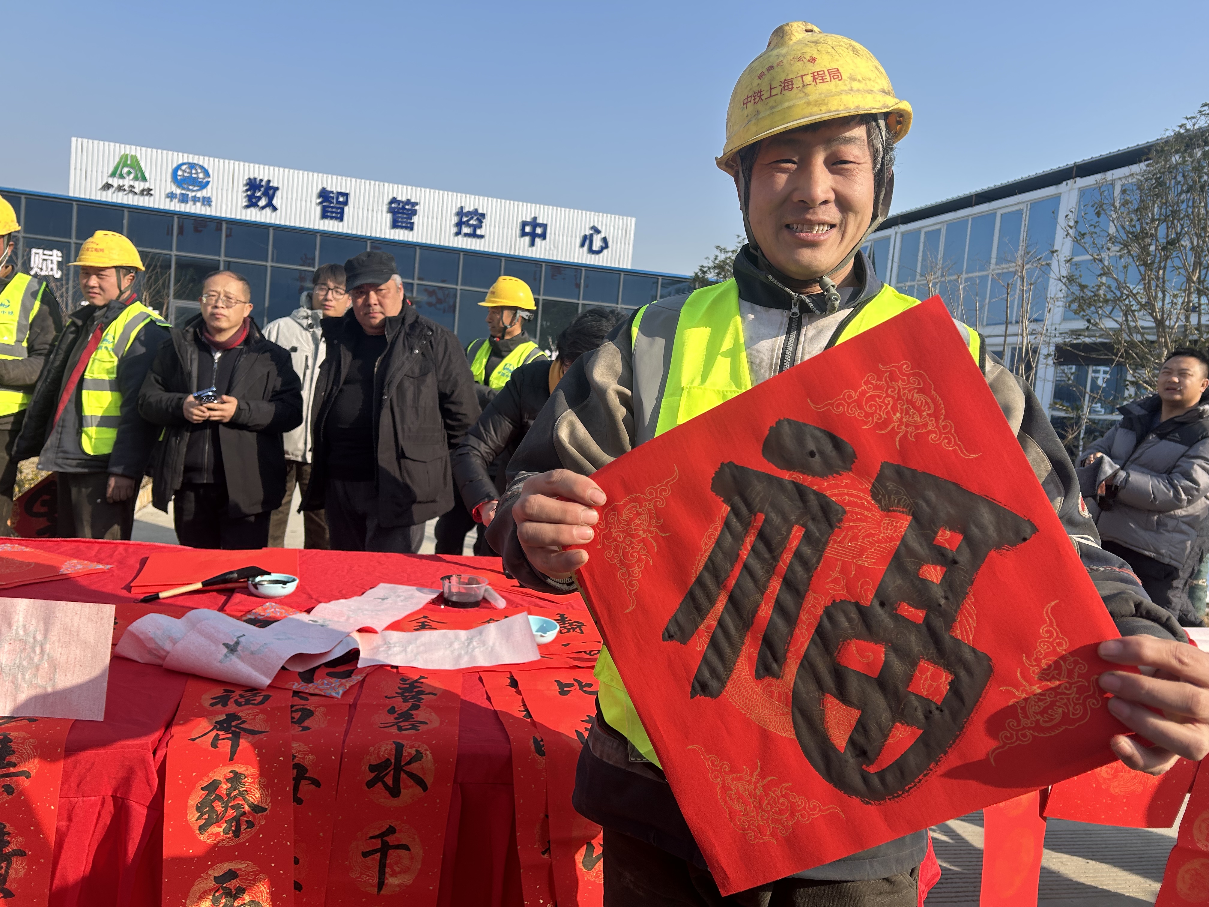 岁暮天寒,情深意暖。1月23日,由安徽省经济记者协会组织的2026年“记者新春走基层”新闻摄影走进中铁上海工程局三公司铜商高速公路3标项目段,50余名中央驻皖及省市主流媒体记者,与部分省市摄影家、书法家一道,用手中的笔墨和镜头,记录火热劳动景象,讴歌平凡伟大的劳动者,并为一线建设者送去真挚的新春祝福。