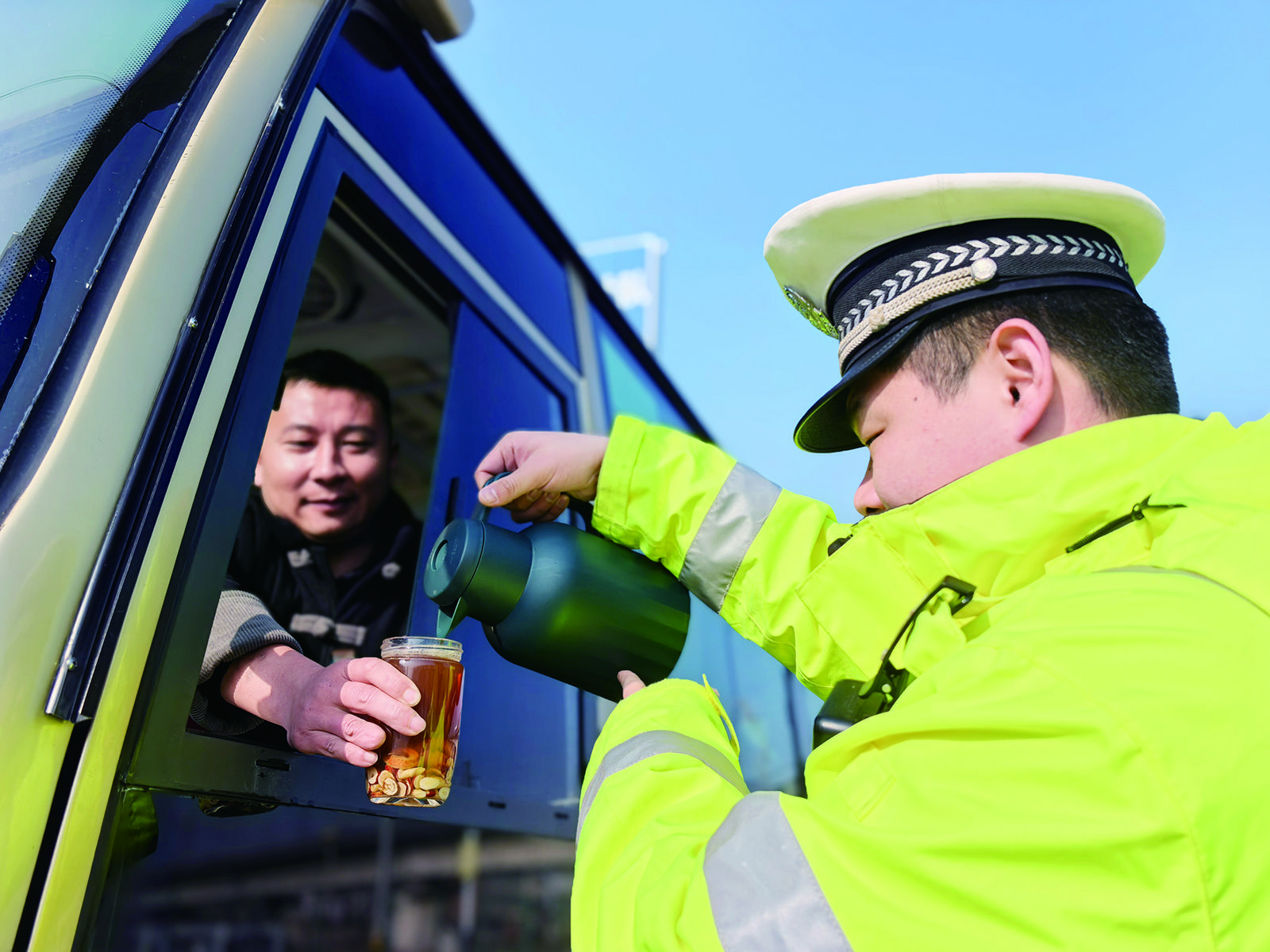 2月2日,2026年春运正式启幕,阜阳市颍上县公安局交管大队同步启动春运护航模式。交警在辖区重点路口设置春运服务站,为过往群众提供热水、应急救助及交通安全宣传服务。同时,采取定点检查与流动巡逻相结合的方式,强化路面管控,严查超员、疲劳驾驶等重点交通违法,加强疏导保畅,全力守护春运道路交通安全有序。(通讯员 陈磊 摄)