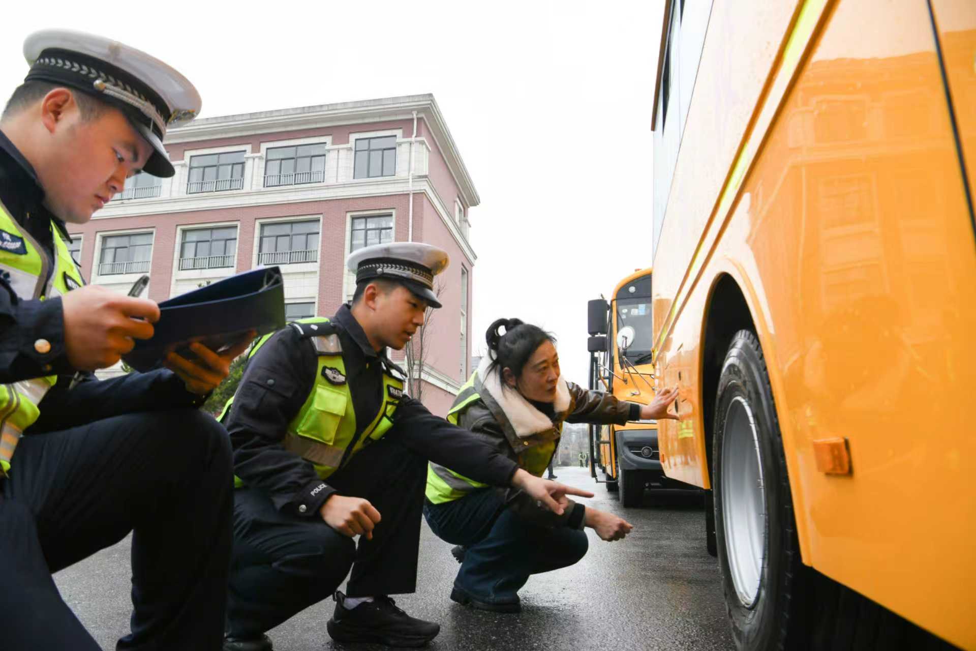 新学期开学在即,为保障学生乘车安全,3月2日,含山县公安局交管大队组织民警对全县45辆校车开展安全专项检查,保证校车“不带病”上路,确保校车安全运行。