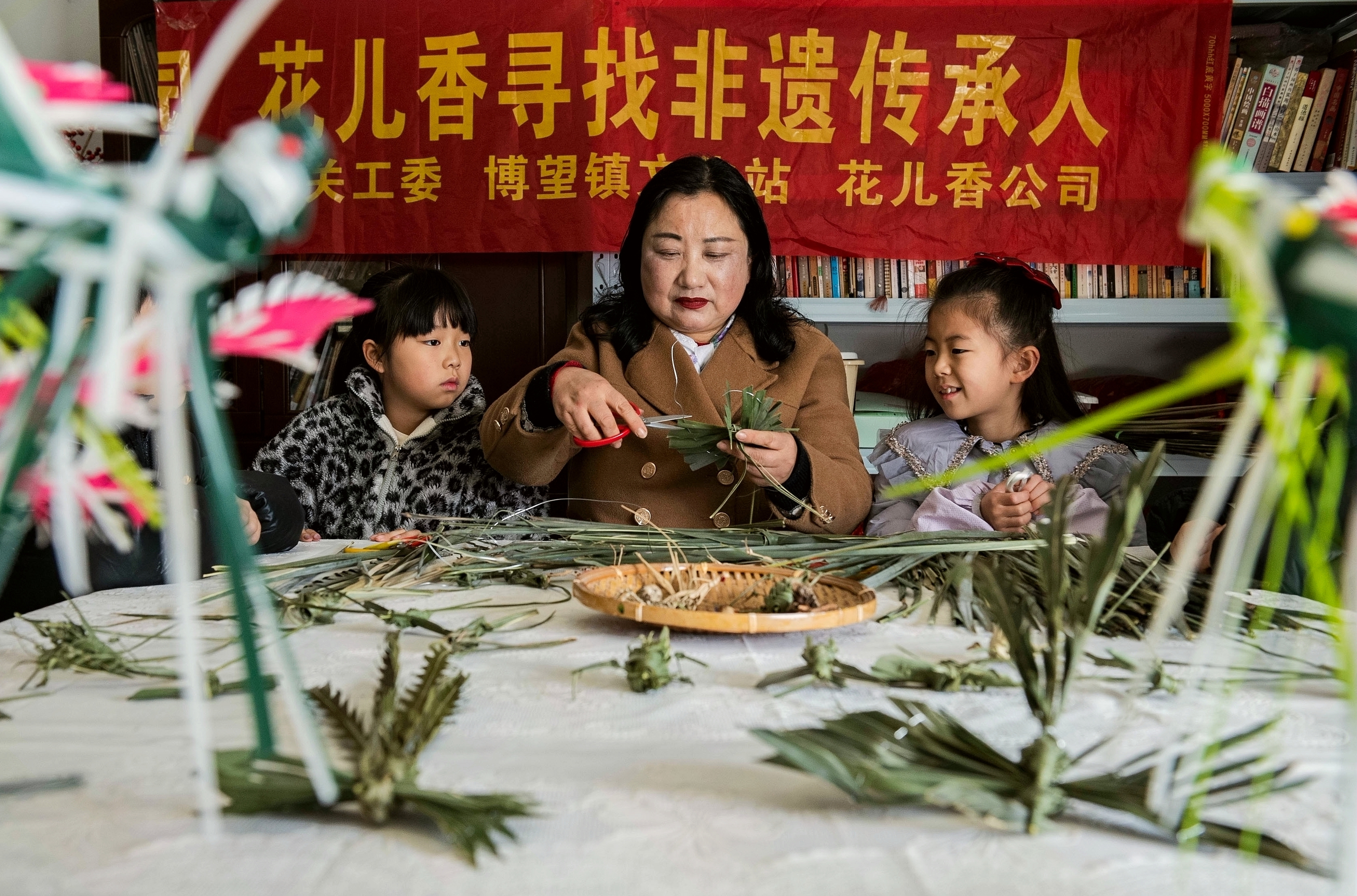 2026年2月28日,马鞍山市博望区博望镇小学生在花儿香工作室跟随民间艺人体验草编技艺。寒假期间,博望镇依托花儿香工作室文化资源,开设非遗体验课堂,通过草编、剪纸、脸谱、香囊等课程,让学生沉浸式学习体验,感受非遗技艺独特魅力,丰富假期文化生活。
